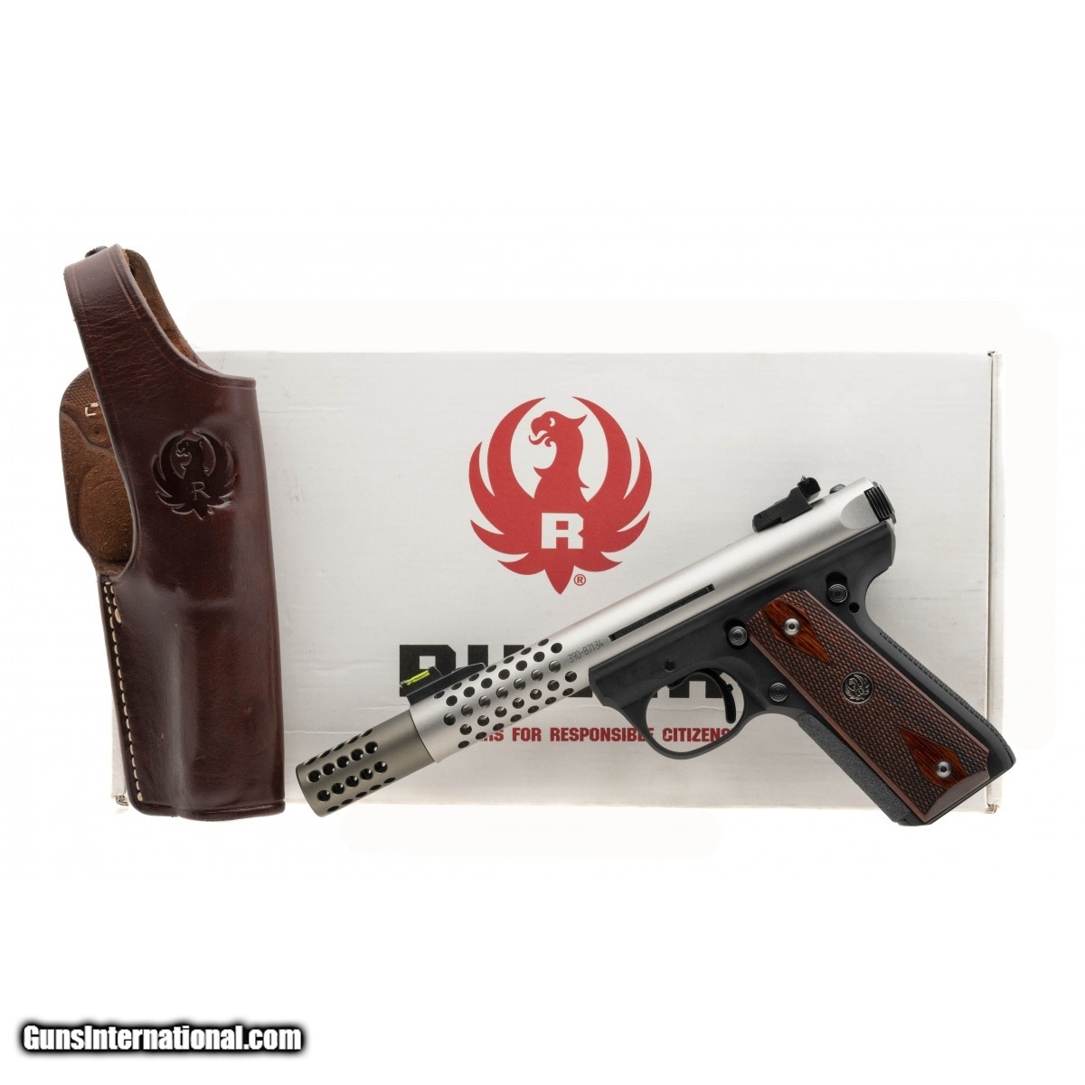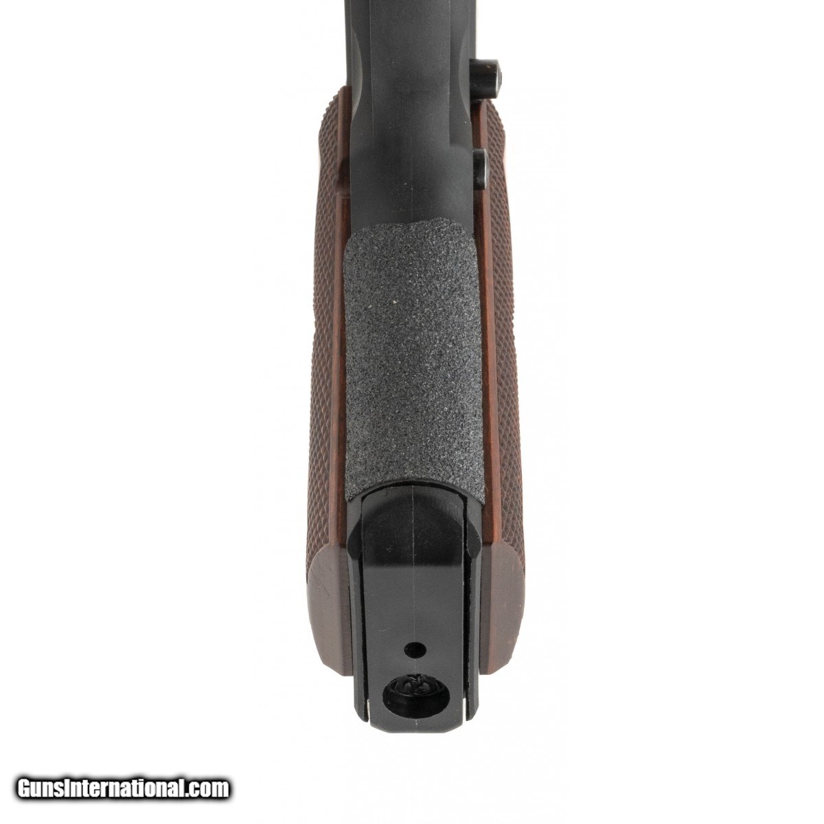Description: " SN: 390-87134, made circa 2014, .22 Long Rifle, 4.5"" Barrel. Target rimfire pistol with rosewood grips, compensator, Fiber optic front sight & adjustable rear sights. Overall excellent condition. Comes with box & extra magazine. SOLD |