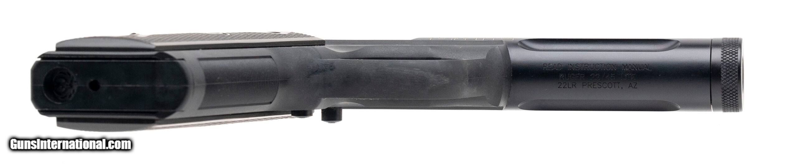 Description: "SN: 390-47517. Modern production, .22LR with a 4.5"" fluted threaded barrel. Bore is very god. Polymer frame semi-auto rimfire pistol with an adjustable rear sight, manual thumb-safety, matte black finish, checkered medallion wood grips, and black polymer frame. Includes additional magazine, scope mounting rail, and Ruger soft carry bag. Overall condition is excellent. Price: $399.95 Contact Seller |