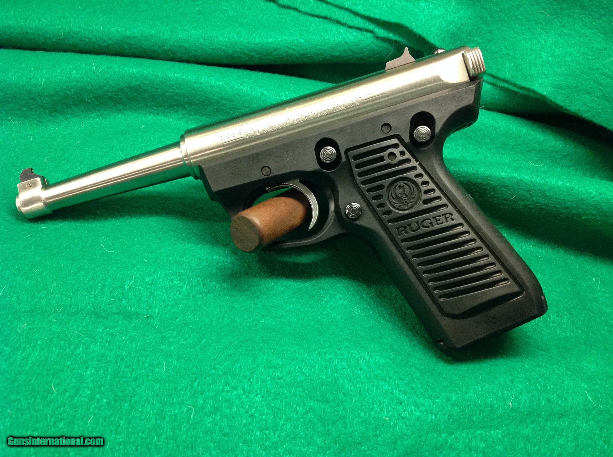 Description: SAN Ruger 22 45 22 long rifle caliber semi auto pistol with polymar frame and 4 3/4" stailess steel barrel and receiver, two ten round magazines fixed front blade sight and windage adjustable rear sight. This gun has had limited use and is in excellent and like new condition. The original Ruger high impact polymar case with Ruger lock and instruction manual is included. SOLD Handgun Caliber: .22 Long Rifle Manufacturer: Ruger Model: 22 45 Serial Number: 218-90332 Barrel Length: 4 3/4 Condition: Excellent Metal Condition: Excellent Bore Condition: Excellent Weight: 1 lb 12 oz Sights: Fix & adjustable |