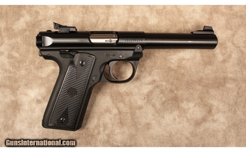 Description: Ruger 22/45 Target 5.5 Heavy Barrel 22 long rifle with factory box and 2 magazines, shows minor wear from use in very good overall condition. .22 Long Rifle SOLD Chambers: 22 LR Metal Condition: Very good Bore Condition: Very good Barrels: 5.5 Heavy Target Weight: 2LBS Sights: Adjustable Item Location: Mesa, AZ |