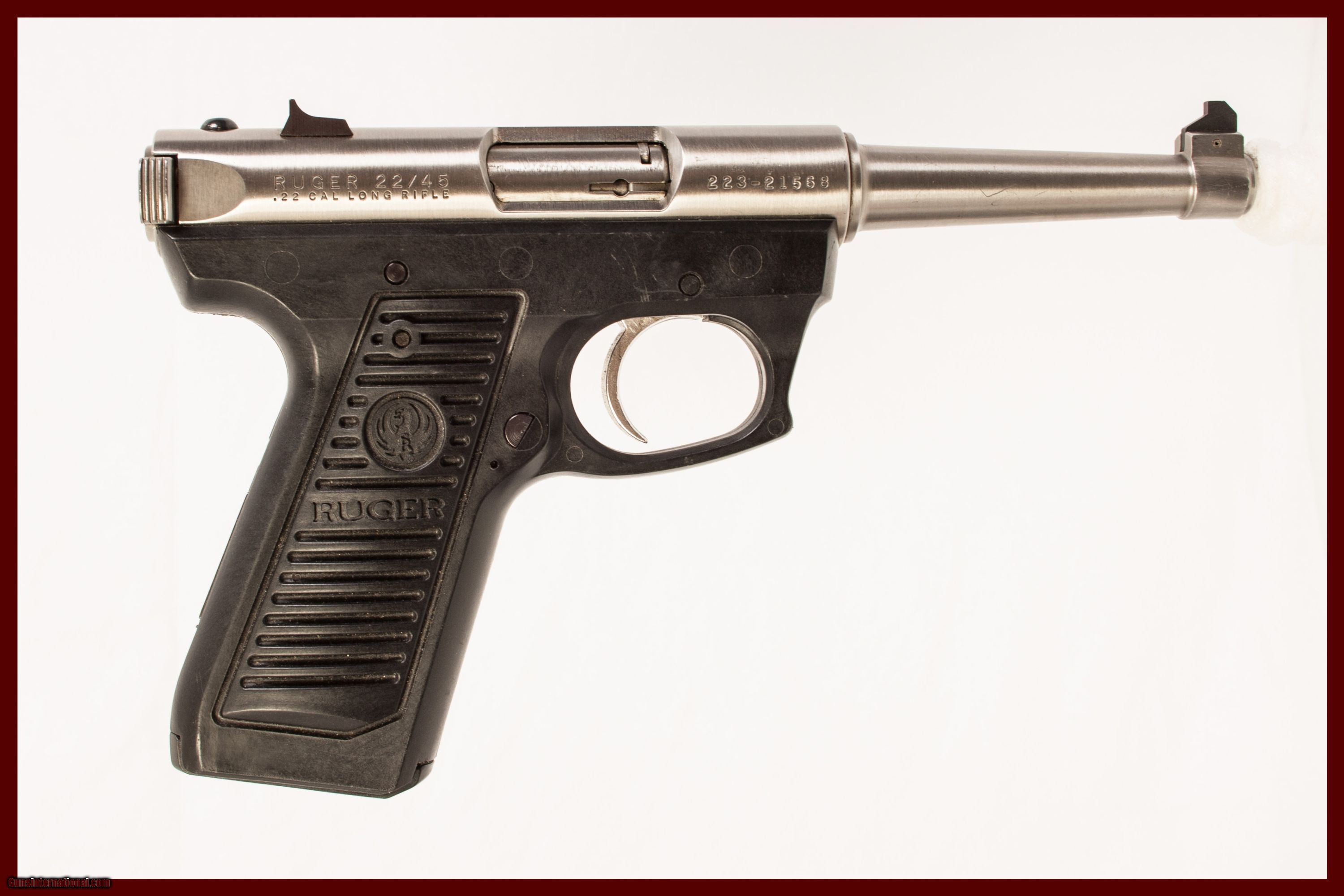 Description: Ruger 22/45 chambered in 22 LR with a 4 3/4 inch barrel case and 2 extra magazines. This gun is in excellent condition and is covered by Dury's Lifetime Warranty.
