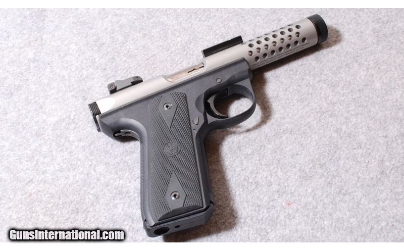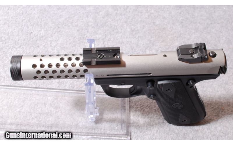 Description: The muzzle is threaded at 1/2"-28 for attaching aftermarket suppressors and it's fitted with an aluminum thread protector. The aluminum receiver coupled with a Zytel® polymer grip frame results in a super lightweight, full-sized pistol. A fully adjustable target rear sight and a light, crisp trigger-pull allow shooters to obtain outstanding accuracy with the 22/45 LITE. The top of the receiver is drilled and tapped if the shooter desires to use optical sights. SOLD Caliber Info: .22 LR Metal Condition: Good with normal handling marks Bore Condition: Bright and shiny. Barrels: 4.5 Triggers: Factory Trigger Stock: Synthetic / Black Weight: 1.5 Lbs. Item Location: Rapid City, SD |