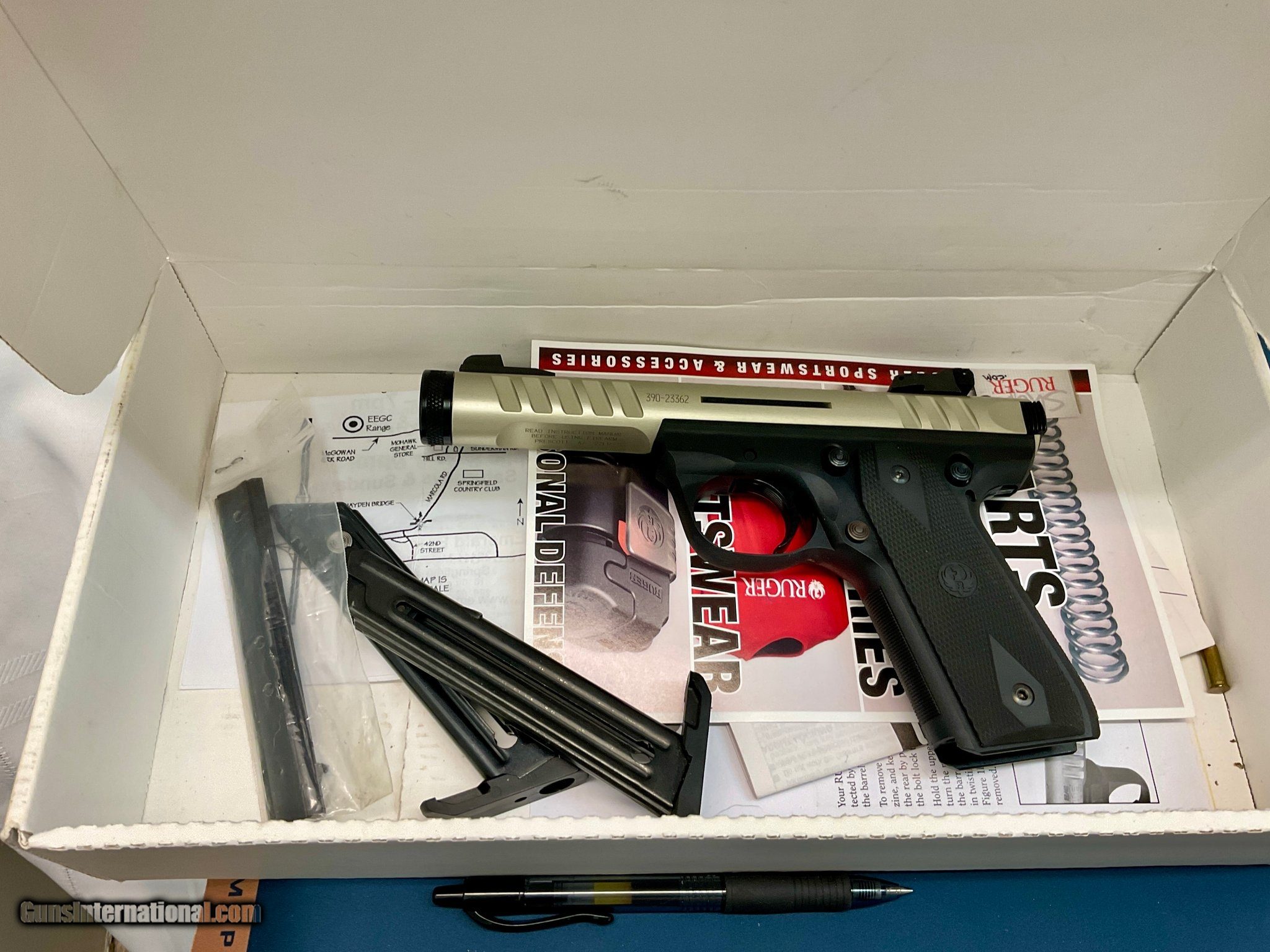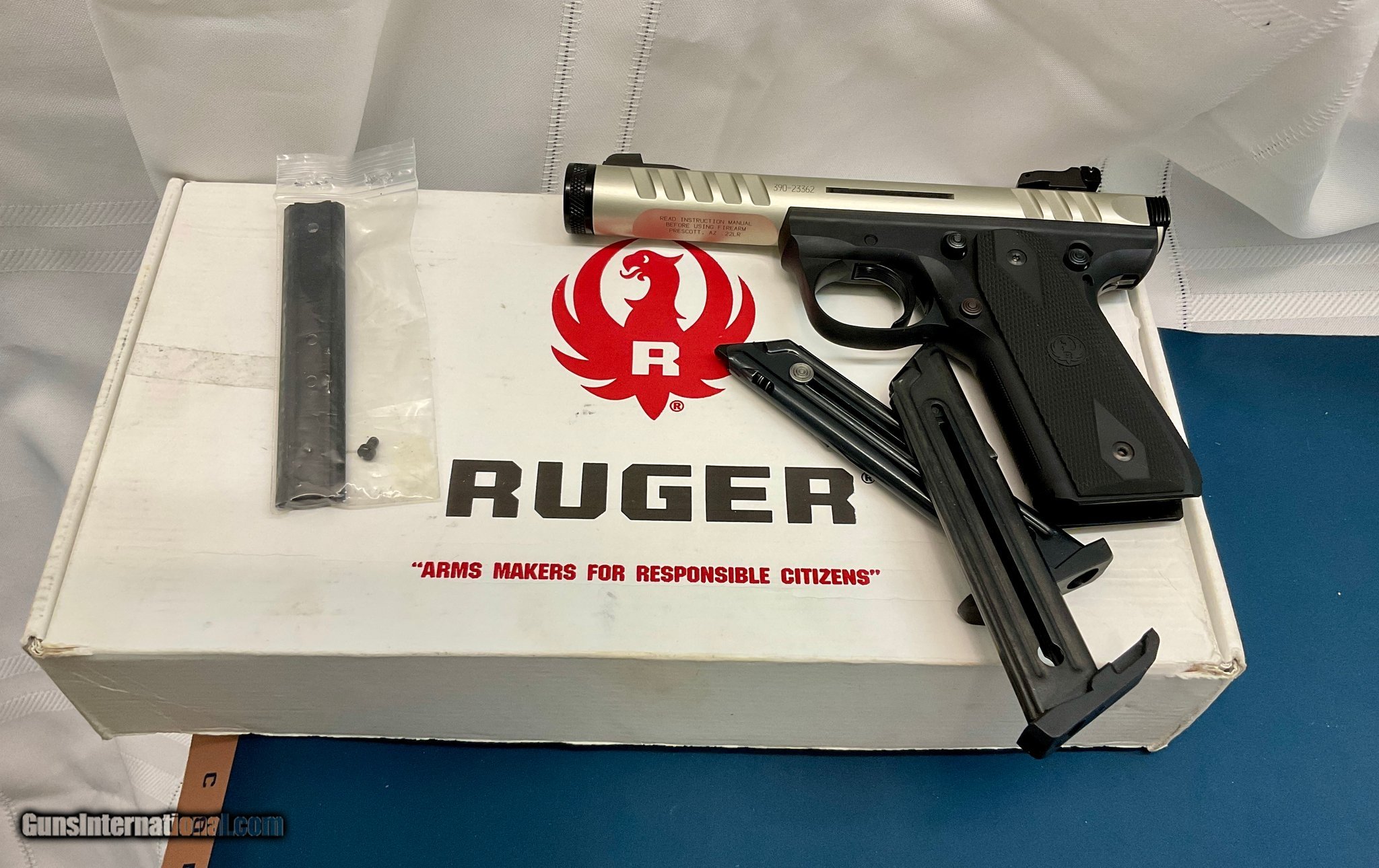 Description: Guns Listing ID: 1413405 Threaded barrel, 2 mags casing from test firing in original box. She‚‚s a beaut! SOLD Manufacturer: RUGER Model: 22/45 Lite .22 LR 4.4" Threaded Barrel Accessory Rail Caliber Info: .22 LR Condition: Used - Non-Certified Barrels: 4.4 BARREL Finish: STAINLESS & BLACK |