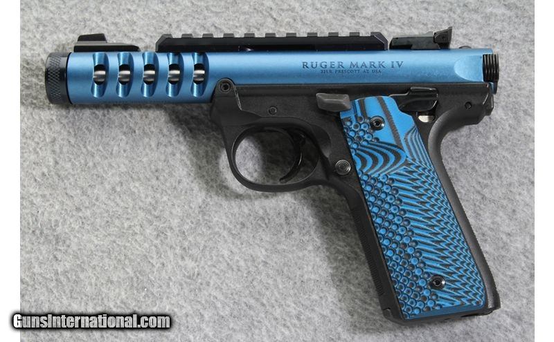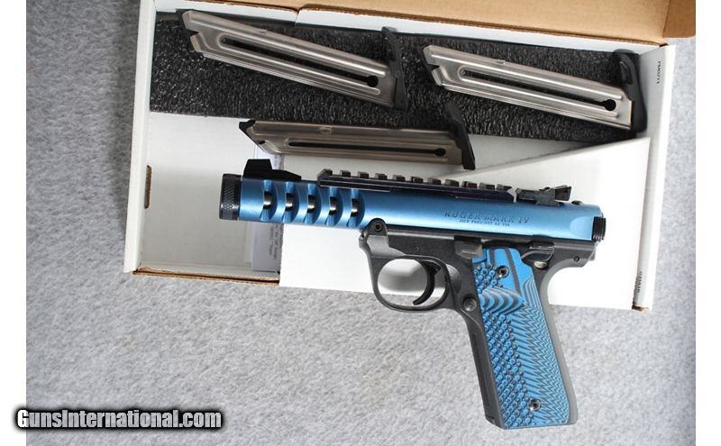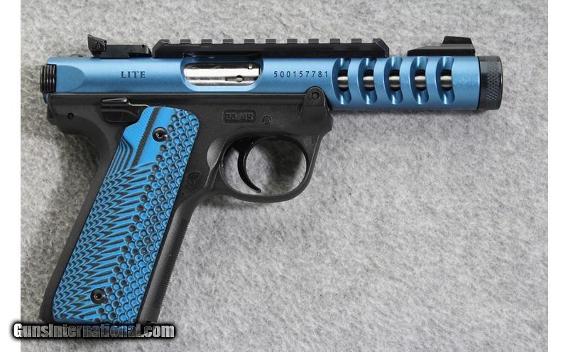 Description: A very nice Ruger 22/45 LITE .22lr with a 4 1/2 inch threaded barrel, in anodized blue and black. .22 Long Rifle SOLD Metal Condition: excellent Wood Condition: excellent Bore Condition: bright and shiny Triggers: Single action auto Weight: 1 lbs 8 oz Sights: "picatinny rail, front blade, adjustable rear notch Item Location: Gonzales, LA |