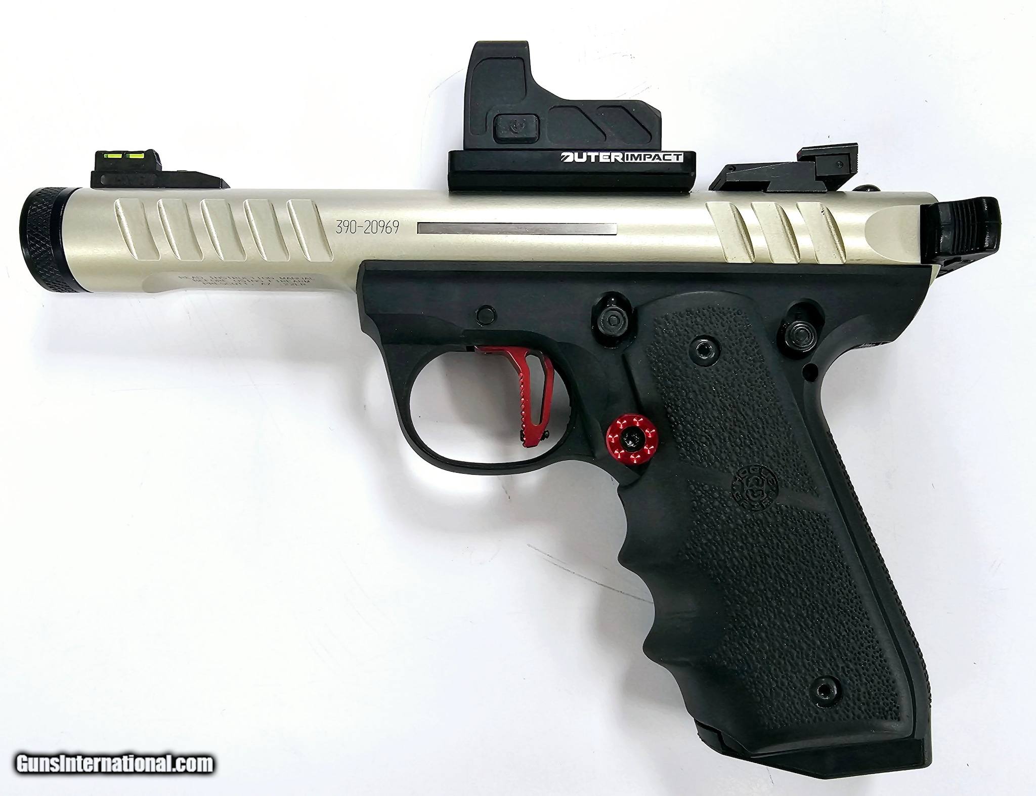 Description: Guns Listing ID: 768599 Selling a Ruger 22/45 LITE in excellent condition. Has a bunch of upgrades such as trigger, T3 reflex sight, extended mag release. Comes with 3 mags and has a threaded barrel. SOLD Manufacturer: RUGER Model: 22/45 LITE Threaded Barrel Caliber Info: .22 LR Condition: Used - Non-Certified Barrels: 4.25 BARREL Finish: GOLD |