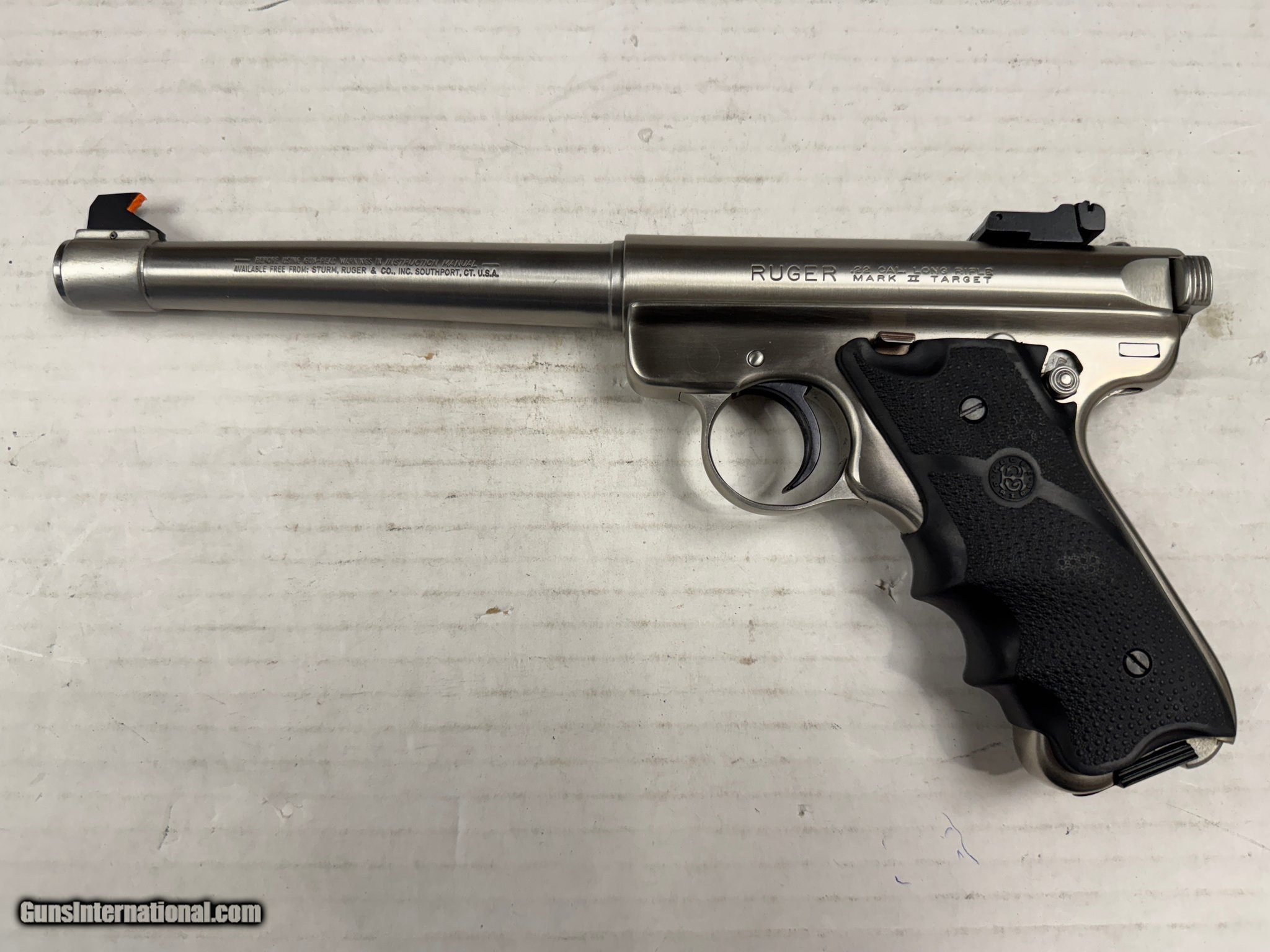 Description: Guns Listing ID: 1442946 Ruger Mark II .22lr 5.5inch Stainless Government Target Semi Automatic Pistol -2x Mags -NO CASE -Very light wear, in great shape SOLD Manufacturer: RUGER Model: 22/45 MARK II Caliber Info: .22 LR Condition: Used - Non-Certified Barrels: 5.5 BARREL Finish: STAINLESS |