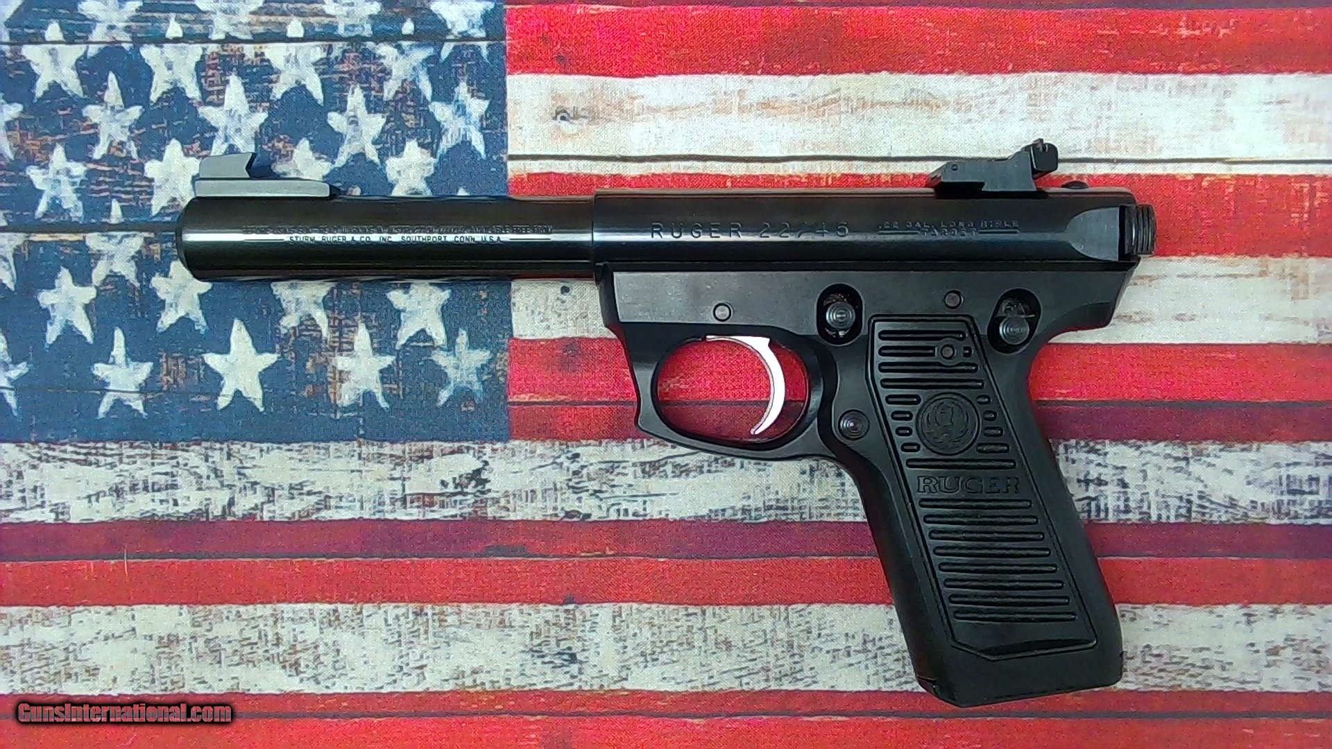Description: Guns Listing ID: 577113 SN: 223-10810. Made in 1999, .22LR with a 5.5\" bull barrel. Rimfire target pistol with polymer lower. Metal shows light marks, but the overall condition is very good. Comes with case. They say a picture is worth a thousand words. These photos are the best statement of condition; please review them carefully before purchasing. Manufacturer: RUGER Model: 22/45 target Caliber Info: .22 LR Condition: Used - Non-Certified Barrels: 5.5" BARREL Action: SEMI AUTOMATIC Finish: black & blued Price: $399.99 Contact Seller |