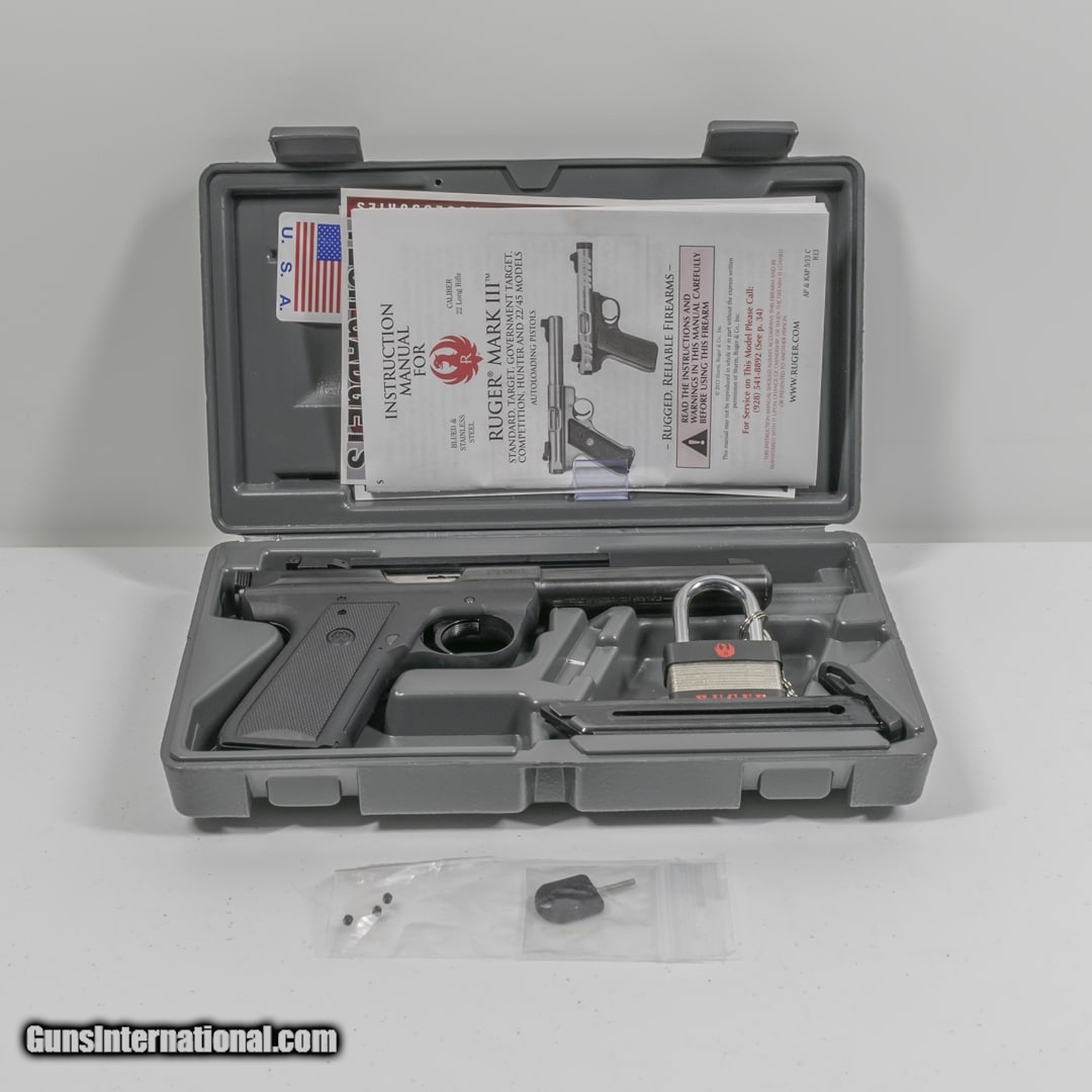 Description: Guns Listing ID: 701045 Manufacturer: Ruger Model: Mark III Caliber: .22LR Action: Semi-Auto Barrel Length: 5.25in Condition: Good Capacity: 10 Notes: Please be aware that we have not test fired this gun. Unless otherwise stated, expect this firearm to fire and function safely. This item is on consignment, prices are fixed per the customer. Includes original case, 2 total mags. Made in USA. UPC: 736676101078 SOLD Manufacturer: RUGER Model: 22/45 TARGET Caliber Info: .22 LR/.22 WMR Condition: Used - Non-Certified Barrels: 6 BARREL |