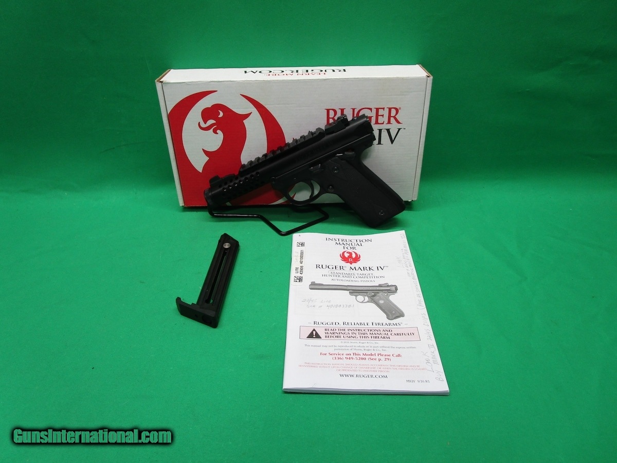 Description: Guns Listing ID: 693778 We have a used Ruger Mark IV 22/45 semi-automatic pistol for sale. This is chambered in 22LR with a 4.5\" barrel. It comes as shown in pictures two 10 round magazine, factory box, and manual. This is in Very Good Used Condition. Overall we would grade at approx 98%. Check out the pictures and feel free to call or email with any questions. SOLD Manufacturer: RUGER Model: MARK IV 22/45 Caliber Info: 22 LR Condition: Used - Non-Certified Barrels: 4.5 BARREL Finish: BLACK |