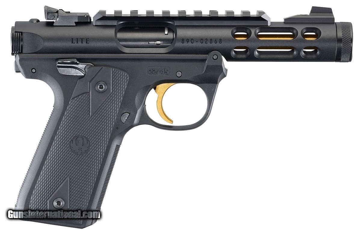 Description: Guns Listing ID: 37121 This Ruger Mark IV 22/45 Lite is a semi-automatic handgun chambered in 22 LR. It is the ideal lightweight rimfire pistol, perfect for target shooting and competition. It is crafted with a ventilated aerospace-grade aluminum receiver and a tensioned stainless steel barrel, as well as a comfortable, precision-molded polymer grip with serrated front and checkered back strap to ensure a secure grasp. The barrel is threaded and boasts ultra-precise refiling for exceptional accuracy and longevity. Adjustable sights aid in target acquisition, while a factory-installed Picatinny rail offers easy mounting of optics and accessories. The simple, one-button takedown makes maintenance on this pistol a breeze. SOLD Manufacturer: RUGER Model: MK IV 22/45 Lite Caliber Info: .22 LR Condition: new Barrels: 4.4 BARREL Finish: BLACK |