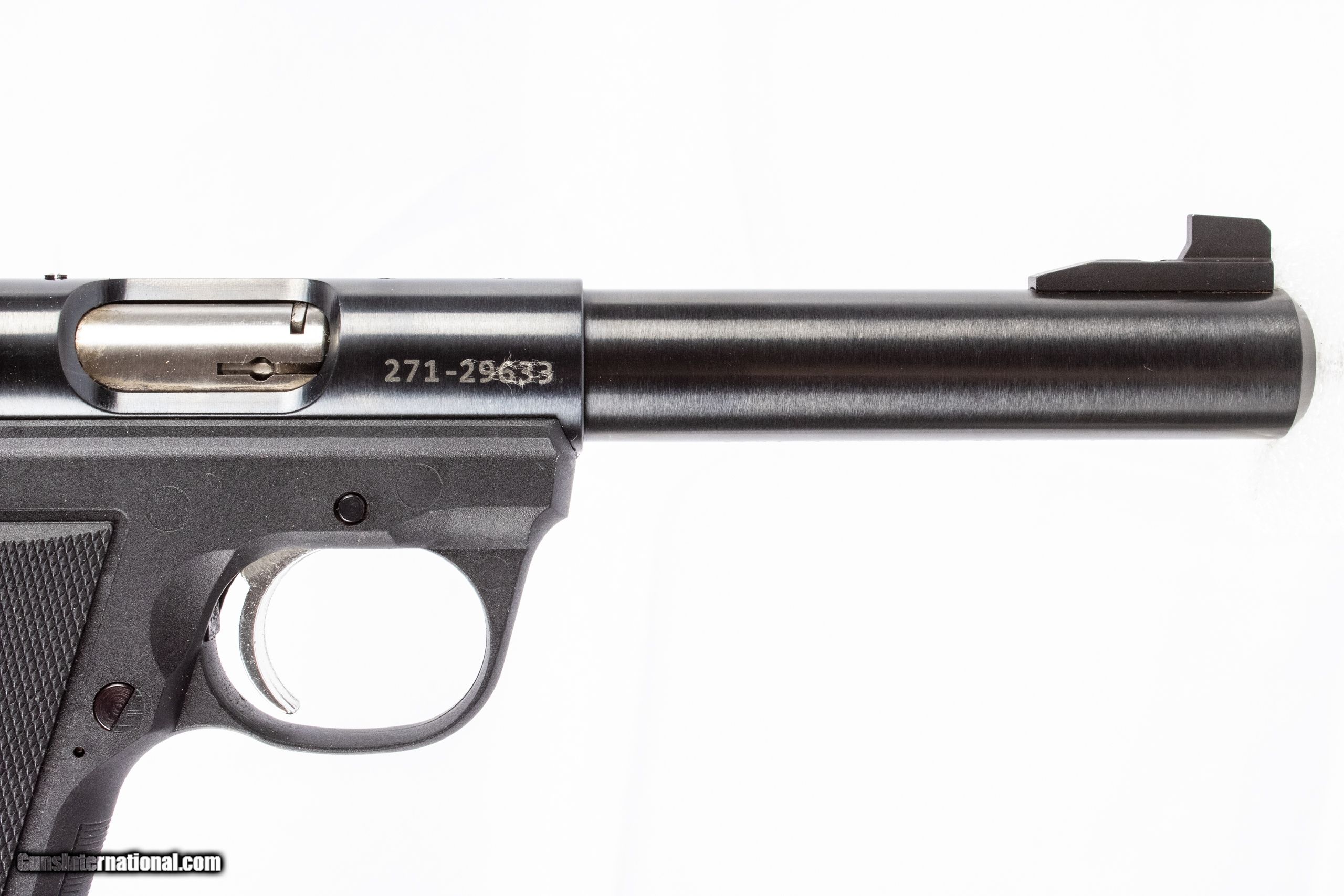 Description: Ruger Target Model 22/45 chambered in 22 long rifle with a 5 1/2 inch barrel, bright & shiny bore, case and 1 extra magazine. The NRA grading condition for this firearm is Excellent. Dury's Lifetime Warranty: All firearms purchased from Dury’s Gun Shop, NEW or USED, are covered by a lifetime warranty. We will repair or replace, at our discretion, any firearm purchased from Dury’s Gun Shop, Inc. for as long as it is owned by the purchaser. This warranty is not transferable. WE BUY GUNS! NO COLLECTION TOO BIG OR SMALL FOR OUR GUNS INTERNATIONAL CUSTOMERS ALL OF OUR FIREARMS CAN BE PURCHASED DIRECTLY FROM OUR DURY'S GUNS ! SOLD Manufacturer: Ruger Model: TARGET MODEL 22/45 Caliber Info: 22 Long Rifle Barrels: 5inches |