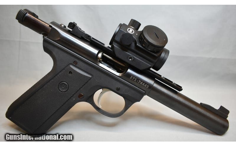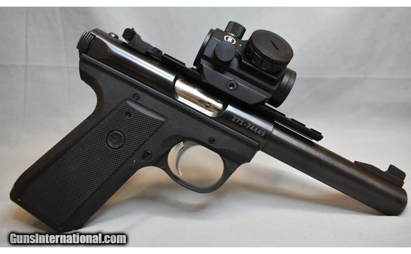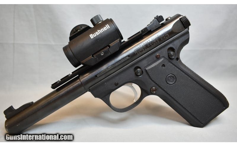 Description: This Sturm Ruger 22/45 MK III Target Model .22 LR is in outstanding condition. It has two very small scratches on the barrel. It comes with an extra 10 round magazine, manual, and factory hard case. Very nice target gun at a good price. .22 Long Rifle SOLD Chambers: .22 with 10 round magazine Metal Condition: Very Good Bore Condition: Very Good Barrels: 5 1/2 Weight: 2 Sights: Adjustable Rear with Bushnell Red Dot Item Location: Kansas City, KS |