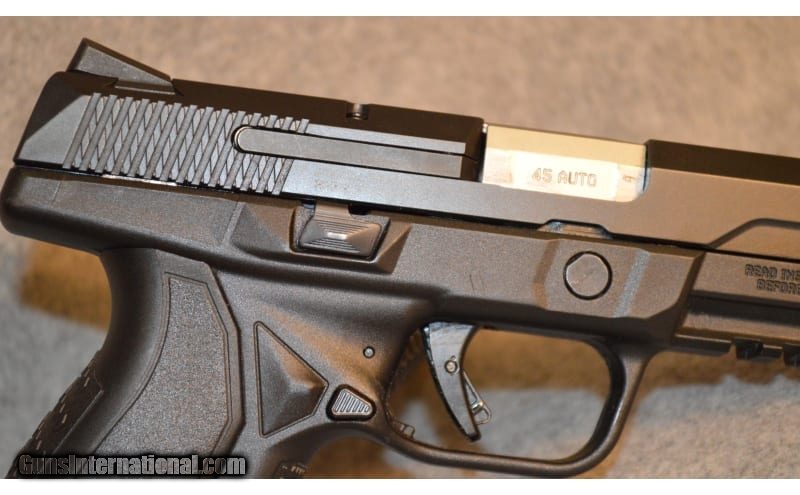Description: Compatible with +P ammunition, the Ruger American Compact .45 ACP Pistol holds up to 10+1 rounds. It's designed with a stainless-steel, nitrided slide and a pretensioned striker system, and it's topped with a MIL-STD 1913 Picatinny rail. Ambidextrous safety. .45 Auto SOLD Barrels: 4.5 Weight: 4 lbs Sights: Novak® LoMount Carry 3-dot sights Item Location: Lexington, KY |