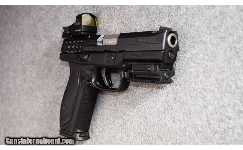 Description: This Ruger American Pistol in 9mm Luger remains in excellent overall condition. It features a Burris FastFire III 3 MOA reflex sight mounted in the rear sight dovetail. A LaserMax laser is mounted on the dust cover. This pistol will ship with two (2) factory magazines. No box. 9mm Luger SOLD Metal Condition: Excellent Bore Condition: Excellent Barrels: 4 Triggers: Factory Butt Pad: Textured Black Polymer Grip Weight: 2 lbs Sights: Burris FastFire III 3MOA Reflex Sight - Lasermax Laser Item Location: Wheeling |