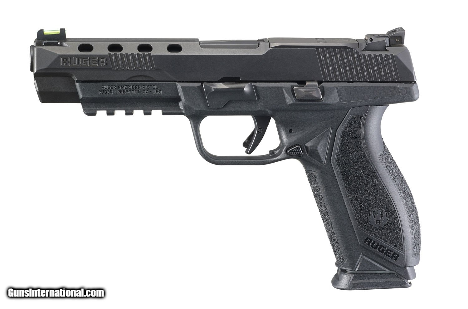 Description: Guns Listing ID: 53312 The Ruger American pistol features a ported stainless steel slide with a black nitride finish, top slide serrations, and is drilled and tapped for direct mounting of red dot reflex optics. The slide also has fully adjustable, serrated rear target sight and fiber optic front sight for rapid target acquisition and accurate shooting. The stainless steel, competition barrel has a durable black nitride finish and 1:16\" slow twist for enhanced accuracy with lighter weight match bullets. A rigid, one-piece, precision-machined, black nitride, stainless steel chassis comes with integral frame rails and fire control housing. The pre-tensioned striker system features a powerful striker spring for positive ignition without a heavier trigger pull. Its frame features a MIL-STD-1913 Picatinny rail, modular wrap-around grip system, and competition-texture. The American includes two, nickel-Teflon plated steel magazines and small, medium and large grip modules. SOLD Manufacturer: RUGER Model: AMERICAN Caliber Info: 9MM LUGER (9X19 PARA) Condition: new Barrels: 5" barrel Finish: BLACK |