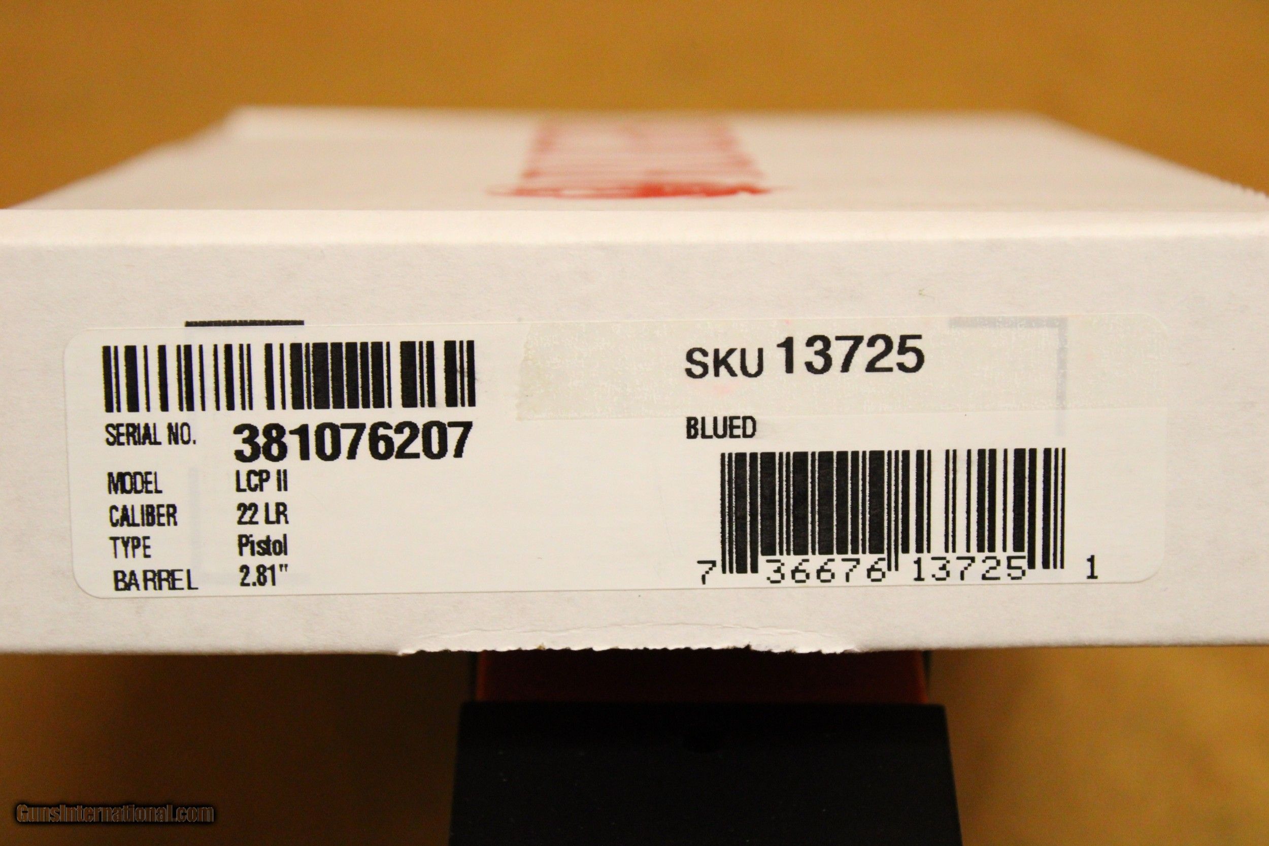 Description: The LCP II is designed to fit a variety of holsters and provide concealed carry options. It has a short, crisp trigger pull with a single action feel. The textured grip frame provides a secure and comfortable grip and the larger grip frame surface provides better distribution of recoil forces. The fixed front and rear sights are integral to the slide, while the hammer is recessed within the slide. Safety features include bladed trigger safety, neutrally balanced sear with significant engagement and strong spring tension, and hammer catch to help prevent the hammer from contacting the firing pin unless the trigger is pulled. All items are also available for sale in our brick & mortar store and are subject to prior sale. Think long, think wrong. Payment On firearms, we typically only accept credit cards or money orders/cashier's checks.