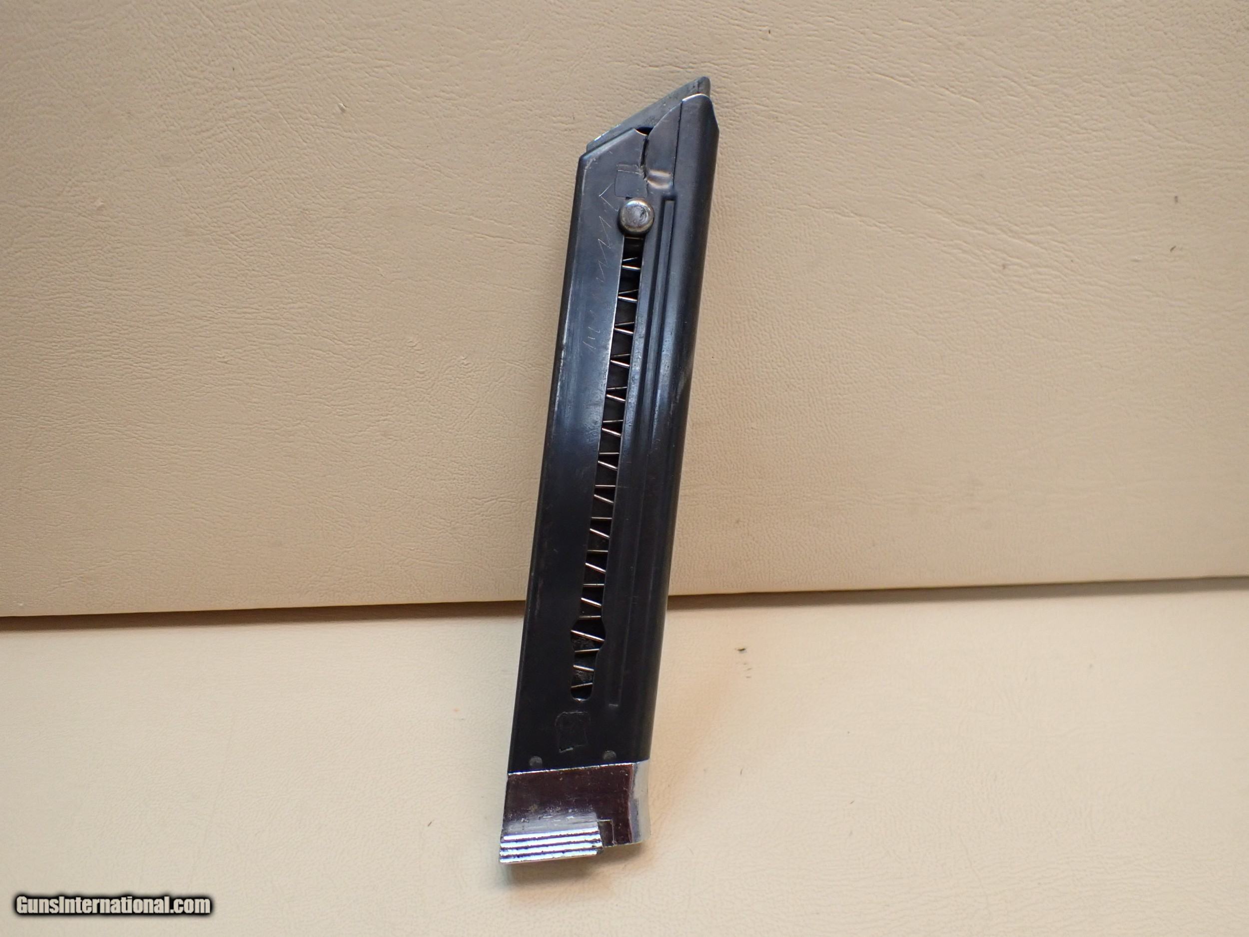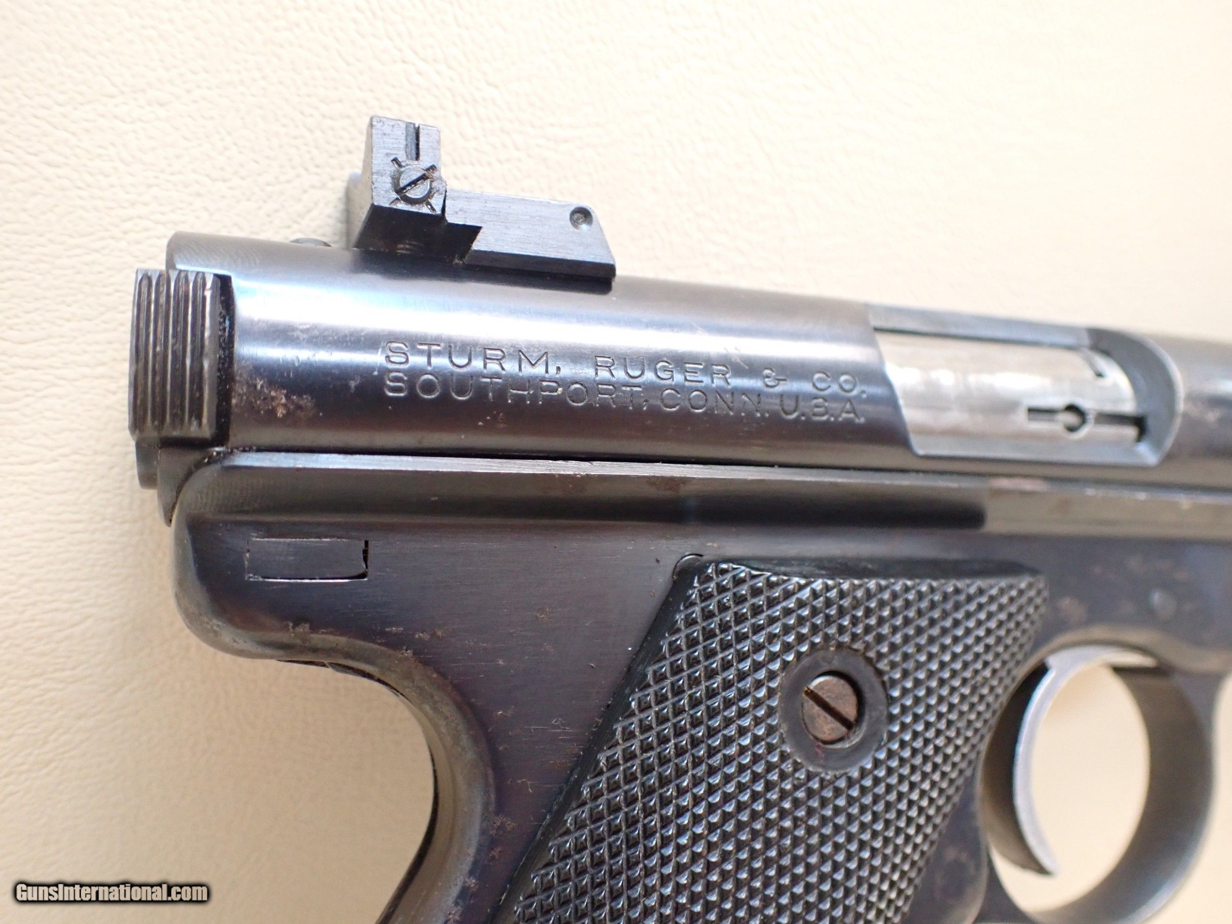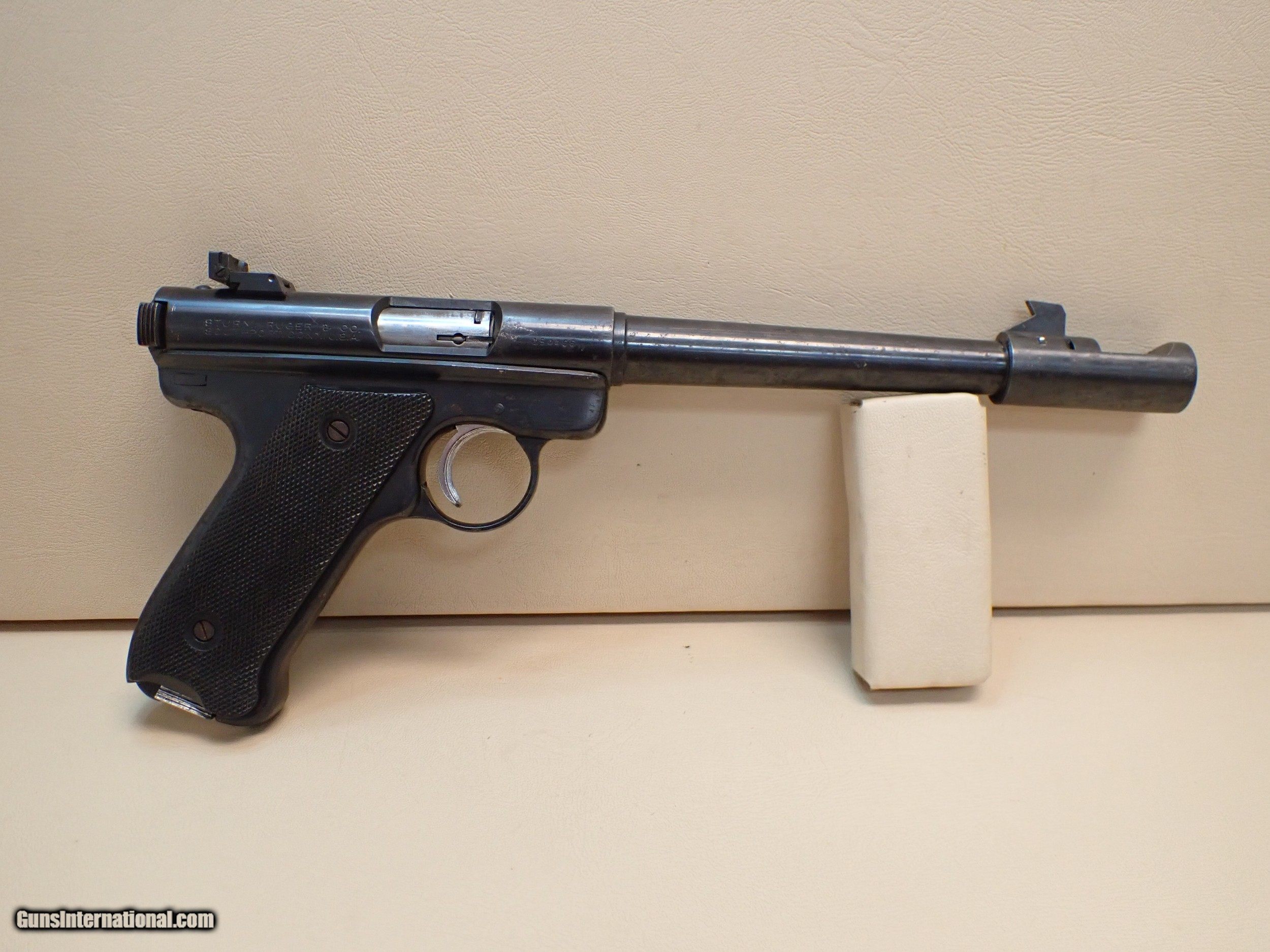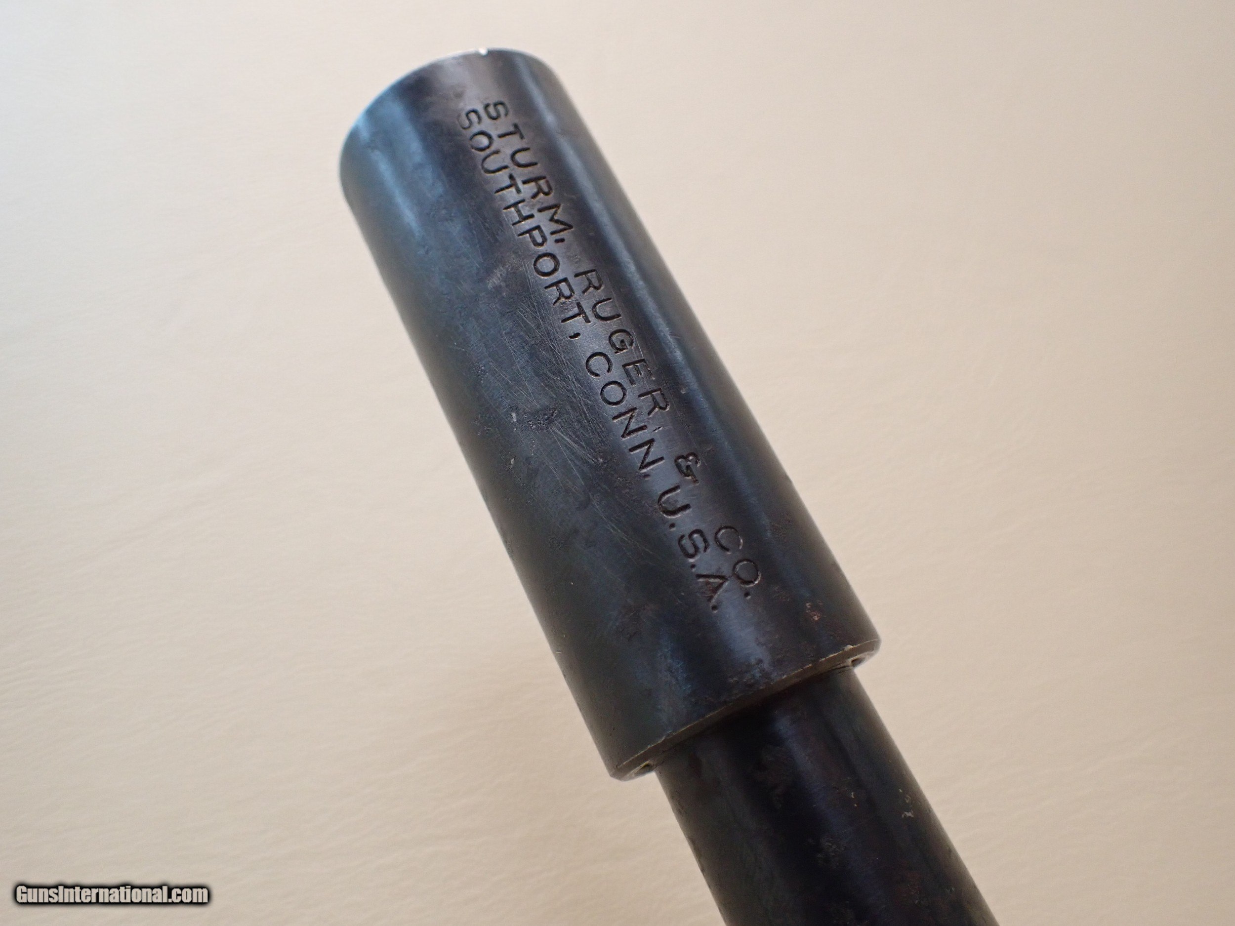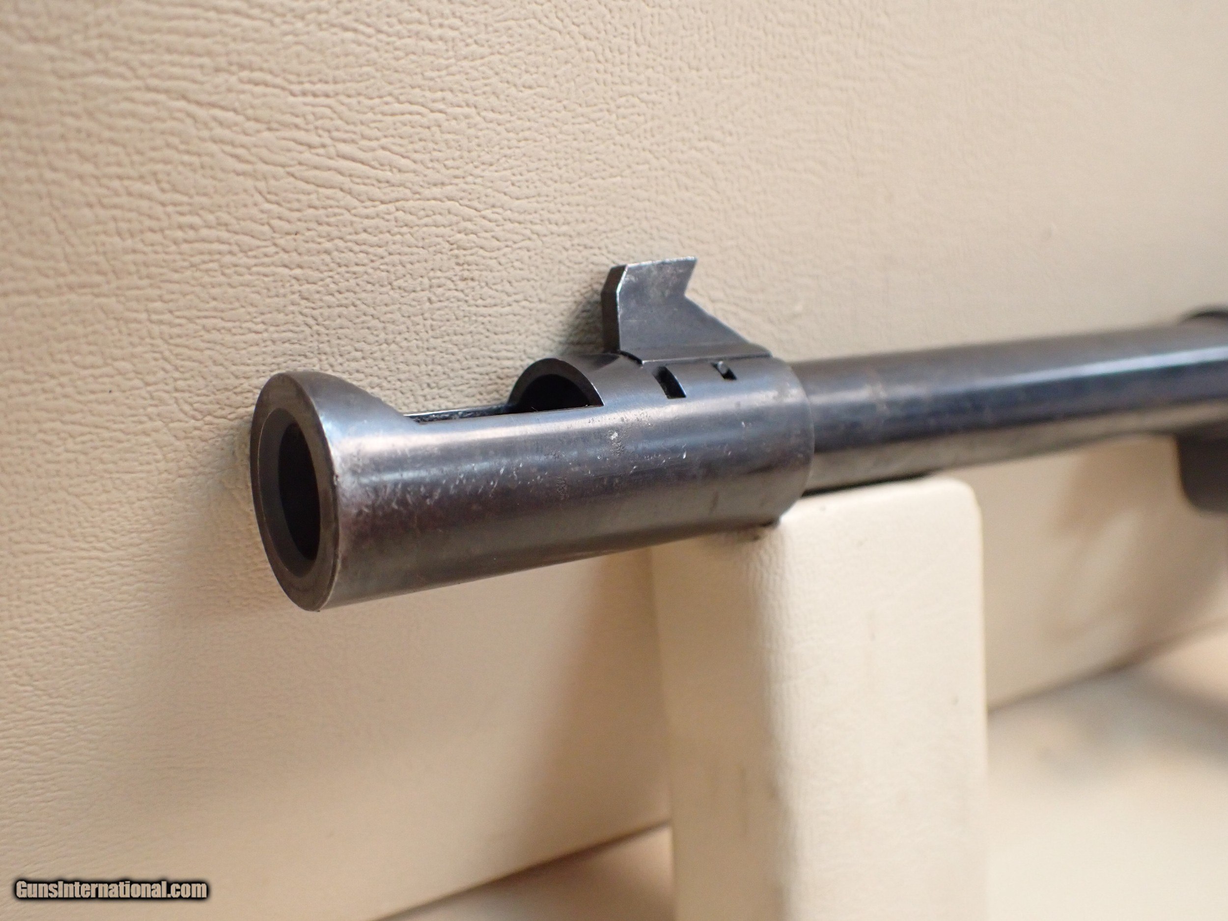 Description: ***SOLD***Ruger Mark I .22LR semi automatic target pistol, dated to 1958. This pistol features the classic Ruger Mark Series design, with a blued steel frame, adjustable target sights, and checkered synthetic grips. The muzzle is also fitted with a seldom-seen Ruger branded compensator. The pistol has signs of age and areas of removed surface rust and finish loss, as shown, however the action is smooth and the bore looks great. Please refer to the photos prior to purchase. Includes one 10rd magazine. A great target pistol for plinking! No sale in MA. C&R OK. SOLD Handgun Caliber: .22 Long Rifle Manufacturer: Ruger Model: Mark I Serial Number: 154466 |