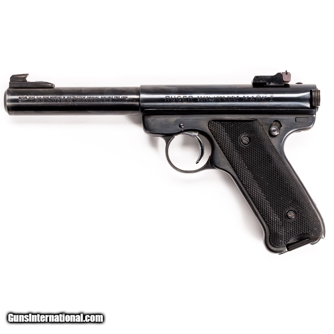 Description: Guns Listing ID: 245009 The Ruger Mark I is a semi-automatic handgun chambered in .22lr. The Mark series is incredibly popular through present day (current model is Mark IV). 1 X 9 round magazine, the factory box, manual, Walnut target grips and a leather Ruger holster are included. SOLD Manufacturer: RUGER Model: MARK I Caliber Info: 22 LR Condition: Used - Certified Barrels: 5.5 BARREL Finish: BLUED |