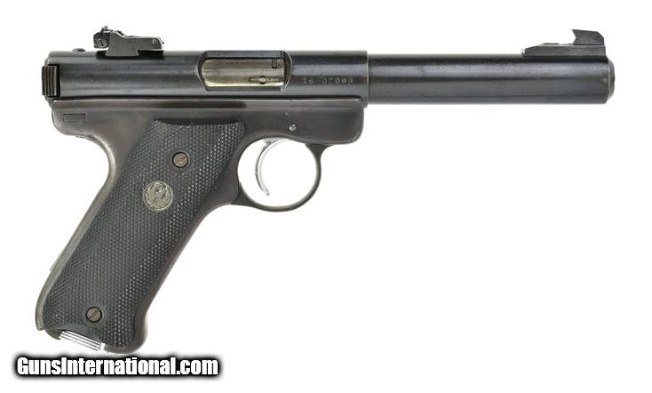 Description: Ruger MKI .22 LR caliber pistol. Bull barrel target model in good condition.