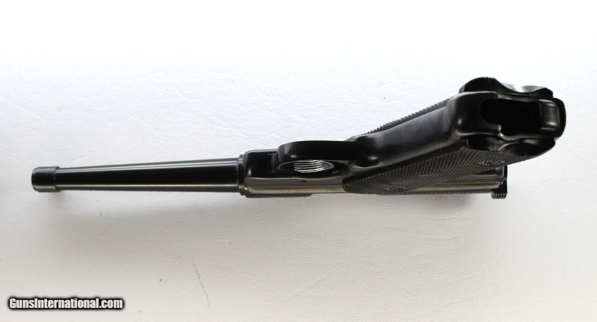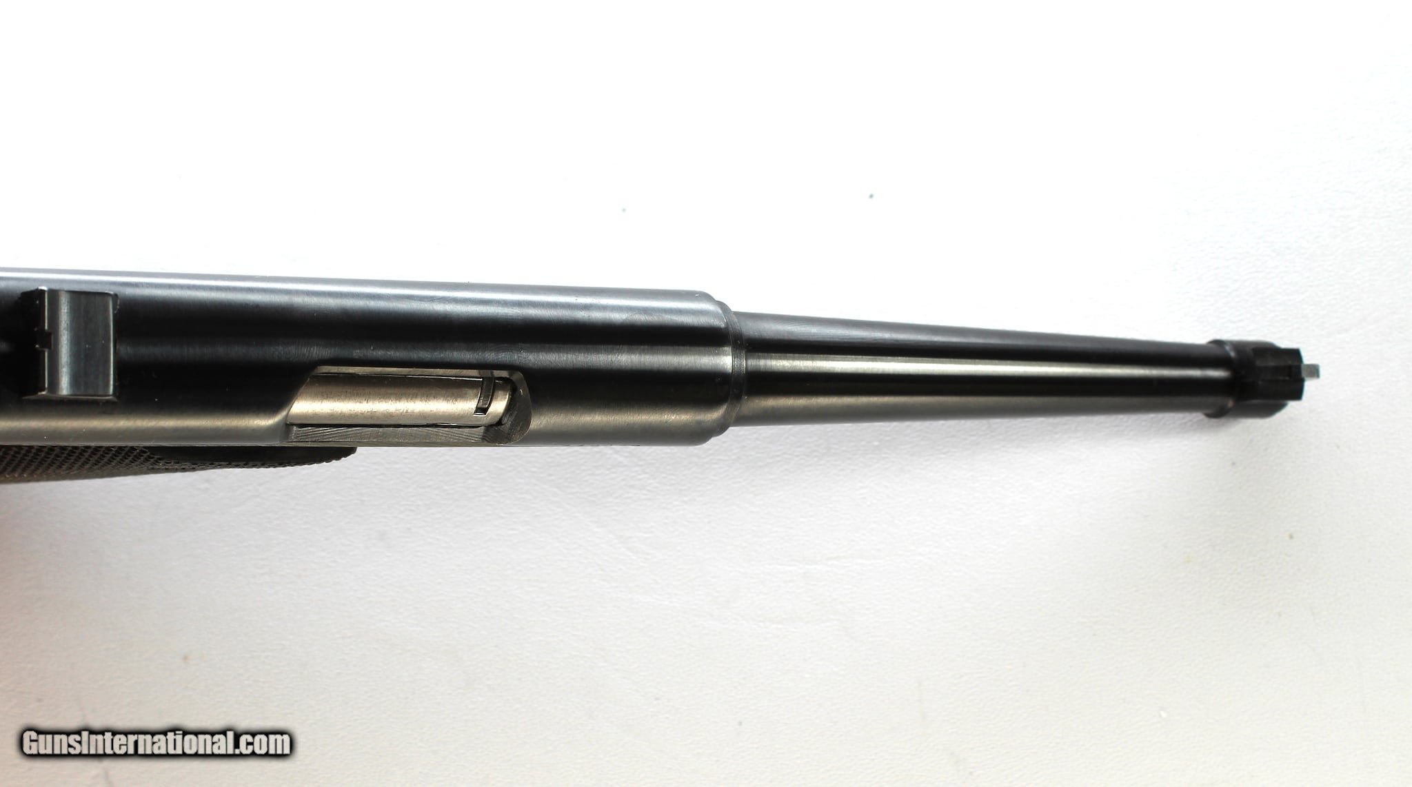 Description: Guns Listing ID: 1110638 SER #442032, 22 LR, 6” tapered barrel with a very good bore. The metal surfaces of this 1967 manufactured pistol retain 97% original blue with spots of freckling, oxidation and light silvering along contact points and high edges. The pistol has all standard features and the checkered plastic grips with single silver and black phoenix medallion rate excellent. A single magazine and leather HUNTER holster is included. SOLD Manufacturer: RUGER Model: "MARK I STANDARD Caliber Info: .22 LR Condition: Used - Non-Certified Barrels: 6 BARREL Finish: BLUE/BLACK |