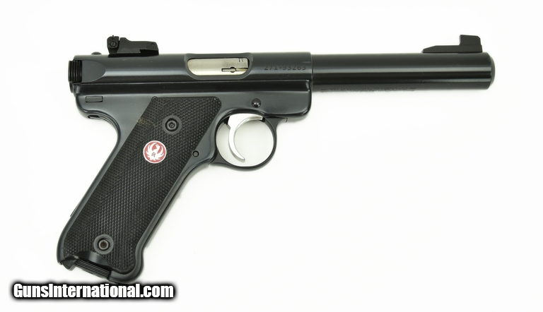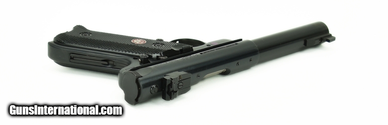 Description: " Ruger MKII .22LR caliber pistol. 5 ½” blue target model with bull barrel. Excellent condition with box and magazine. SOLD |