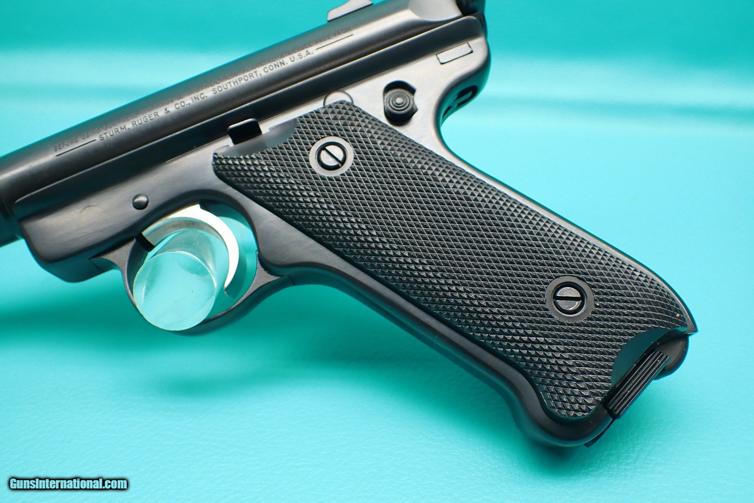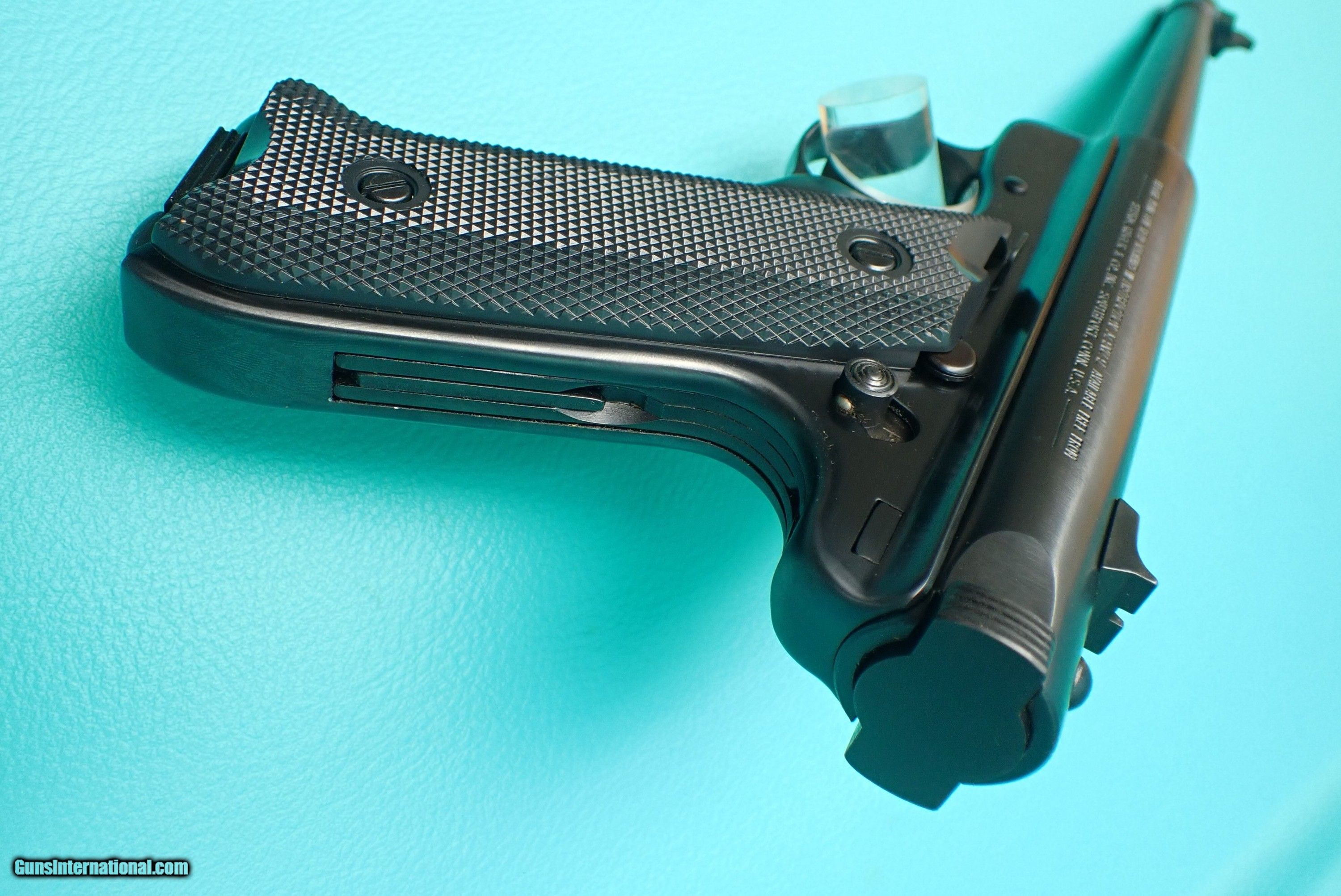 Description: ***SOLD**Ruger MKII .22LR semi-automatic pistol dated to 1981. This pistol features the classic Ruger target pistol design, with a beautiful blue finish and black plastic grips. This pistol is in spectacular original condition with virtually no finish wear as well as a perfectly functional action and a great bore. This pistol comes with a 10rd magazine, a factory box with paperwork, and it's original distributor shipping box. Please refer to the photos for overall condition. No handgun sales in MA. Shipping $30.00.***SOLD** SOLD Handgun Caliber: .22 Long Rifle Manufacturer: Ruger Model: MKII Serial Number: 18-80847 |
