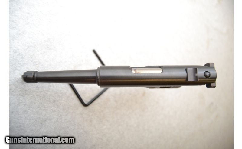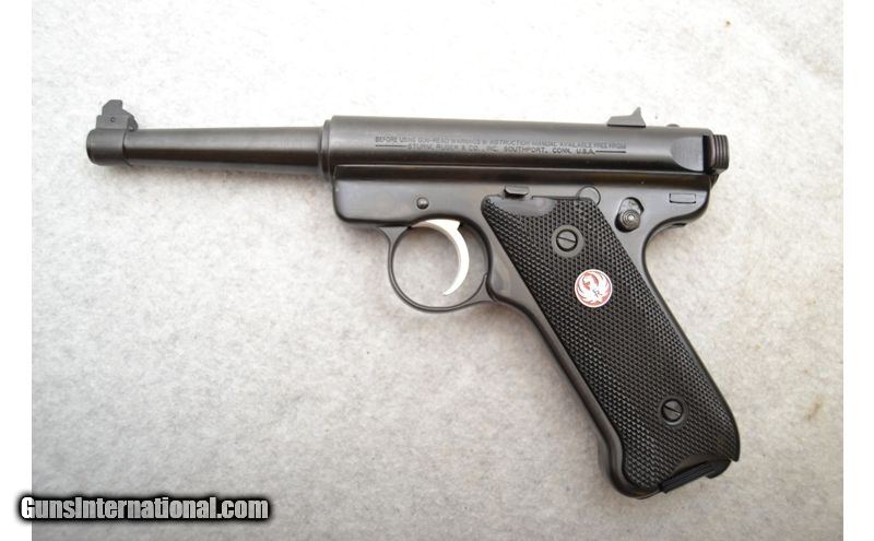 Description: Very good shape overall. Metal has a few tiny handling marks but is excellent overall. Bore is excellent with good rifling and bright shine. .22 Long Rifle SOLD Chambers: Semi-automatic fed from detachable magazines. Metal Condition: Very good. Wood Condition: Grips are in excellent condition. Bore Condition: Excellent. Barrels: 4¾" Blued standard profile. Triggers: Wide nickel plated with grooved surface. Butt Pad: Black plastic grip panels. Weight: 2.2 lbs. Sights: Fixed front blade and rear notch. Chokes: N/A Item Location: Green Bay |