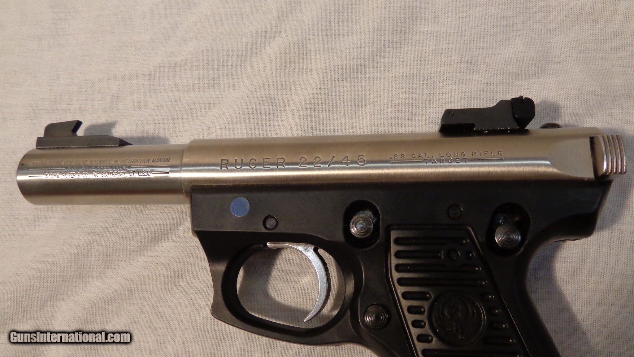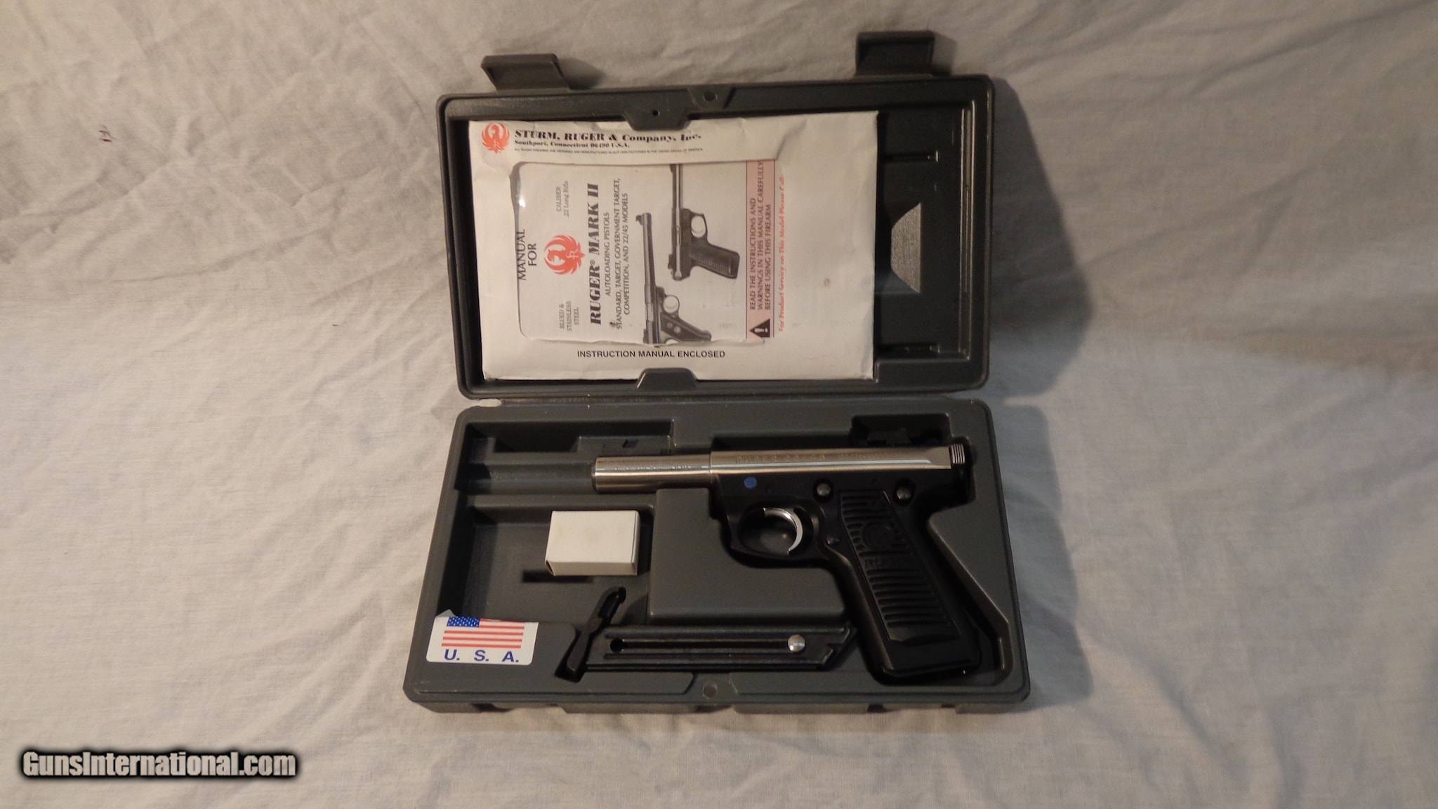 Description: Guns Listing ID: 560254 This Ruger is in very good condition overall showing a few light handling marks. The factory hard case and two magazines are included. SOLD Manufacturer: RUGER Model: Mark II 22/45 Caliber Info: .22 LR Condition: Used - Non-Certified Barrels: 3.75 BARREL Finish: STAINLESS |