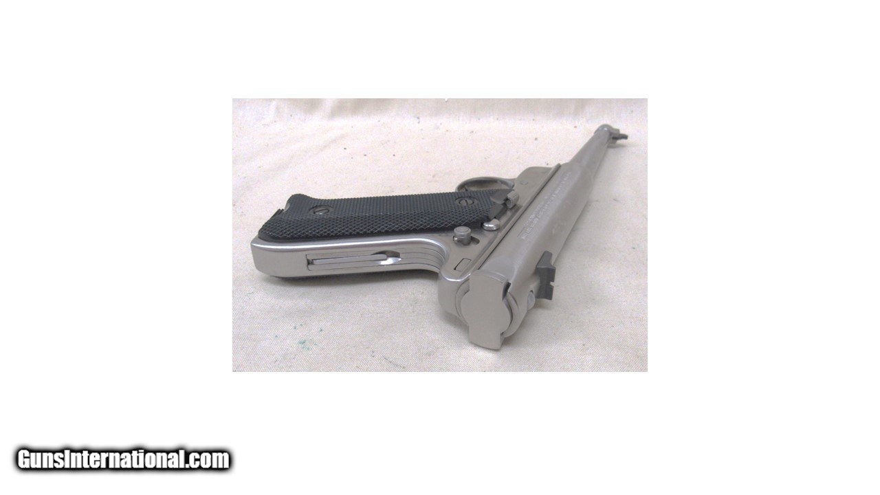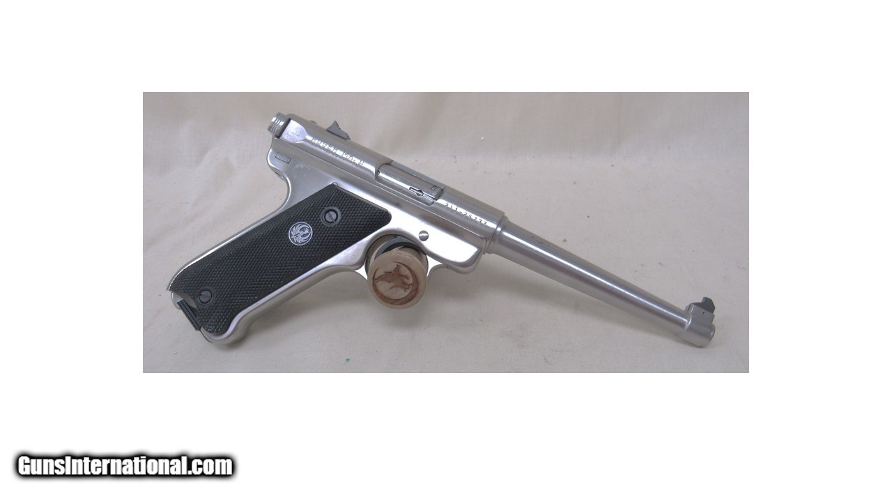 Description: Guns Listing ID: 1307759 Ruger Mark II, Single-Action Semi-Automatic Metal Frame Full-Size Pistol in, 22LR, 6\" Barrel, Stainless Steel, Checkered Grips, Dovetailed Rear Sight, Fixed Undercut Patridge Front Sight, 10 Rounds, 1 Magazine SOLD Manufacturer: RUGER Model: MARK II Caliber Info: .22 LR Condition: Used - Non-Certified Barrels: 6 BARREL Finish: STAINLESS |