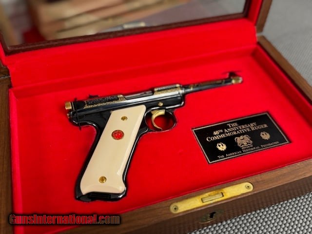 Description: Guns Listing ID: 477912 Ruger Mark II .22 Lr This 40th Anniversary Edition of the Ruger Mark II with Commemerative Case for Display is an excellent edition to any collectors Collection... Item is Marked 40th775 Meaning it is the 775/1000 only made... SOLD Manufacturer: RUGER Model: MARK II Condition: Used - Non-Certified Barrels: 4.75 Gauge Info: .22 LR Finish: black |