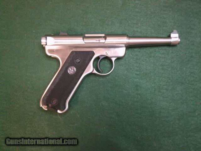 Description: Guns Listing ID: 601145 This Ruger Mark II stainless has a 4.75\" tapered barrel and is in very good condition. Manufacturer: RUGER Model: MARK II Caliber Info: .22 LR Condition: Used - Non-Certified Barrels: 4.75" BARREL Action: SEMI AUTOMATIC Finish: BRUSHED STAINLESS Price: $420.99 Contact Seller |