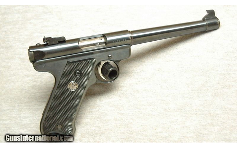 Description: Excellent - light wear and handling marks, comes with one mag. A good choice for rimfire handgun competitions. Manufactured in 1983. .22 Long Rifle SOLD Chambers: Semi auto Metal Condition: Excellent Wood Condition: Grips are excellent Bore Condition: Bright Barrels: 7 Triggers: Factory trigger Butt Pad: Ruger grips Sights: Adjustable sights Item Location: La Vista, NE |