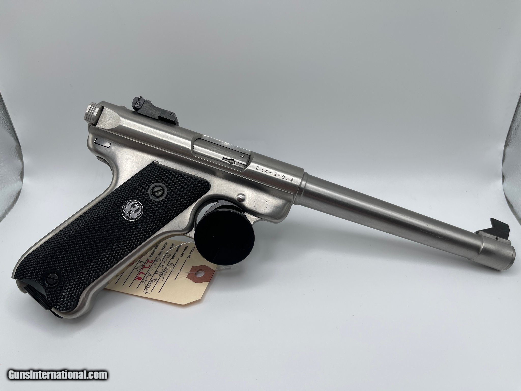 Description: Guns Listing ID: 1302834 Up for sale today we have a ruger Mark II target pistol. This pistol is chambered in the ever popular 22 long rifle. It features the heavy tapered 6.75 inch barrel with adjustable sights included with the pistol is one magazine. Overall the pistol is still in excellent shape, and it was well cared for. The Mark II versions were revered as having some of the best factory triggers. SOLD Manufacturer: RUGER Model: MARK II TARGET Caliber Info: .22 LR Condition: Used - Non-Certified Barrels: 7 BARREL Finish: STAINLESS |