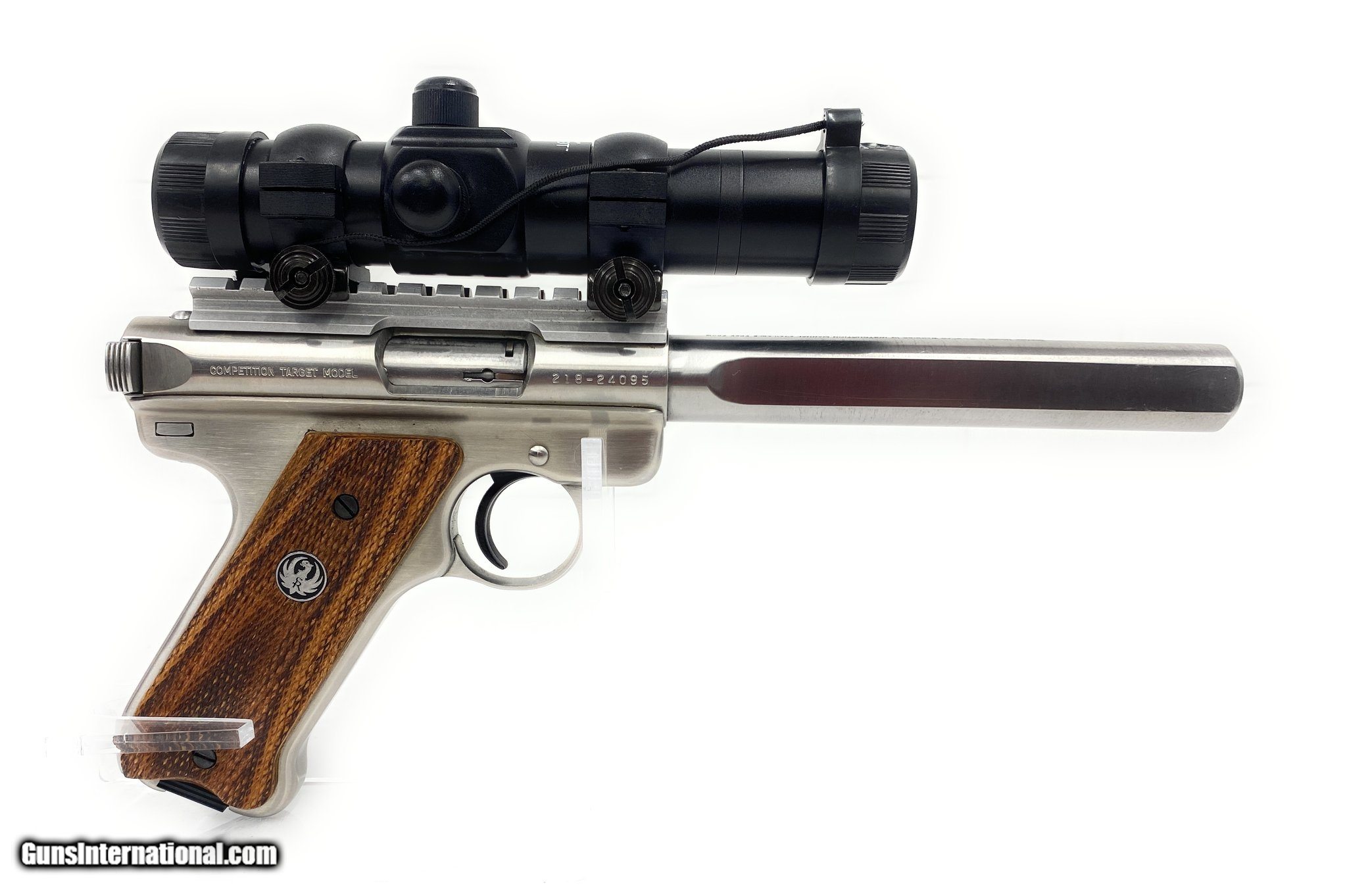 Description: Guns Listing ID: 535771 This Mark II Competition Target Model is in excellent condition. Wood grips are mint! Stainless steel looks great. No scuff or marks on frame/barrel. Barrel is clean, clear and has a good bore. Live out your olympic sharp shooter dreams with this bad boy. Comes with 3 magazines, instruction manual and a tasco Accudot red dot sight. All information is correct to the best of our knowledge. Before making a purchase do your own due diligence. SKU-25060034 WEIGHT: 4lbs BOX: M1 SOLD Manufacturer: RUGER Model: Mark II Target Caliber Info: .22 LR Condition: Used - Non-Certified Barrels: 7 Action: SEMI AUTOMATIC |