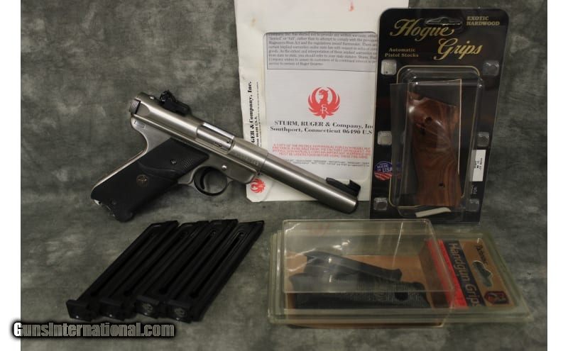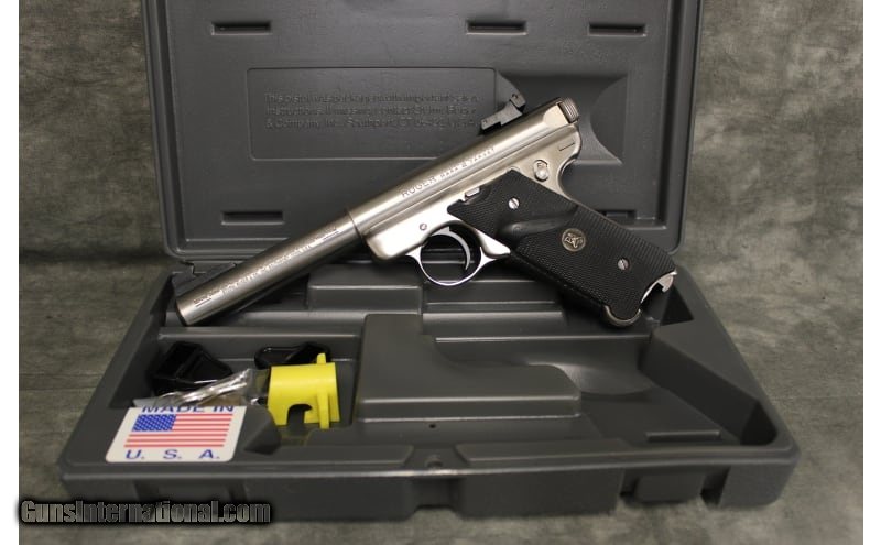 Description: Ruger Mark II Target 22 LR with 4 magazines, 3 sets of grips and the original box. Firearm is in excellent condition. .22 Long Rifle SOLD Metal Condition: Excellent Bore Condition: Bright & Shiny Barrels: 5.5" Heavy Barrel Sights: "Fixed Front Blade, Adjustable Rear Item Location: Auburn Hills, MI |