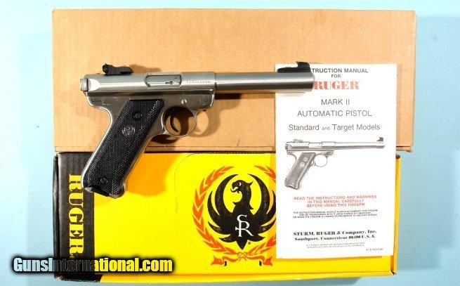 RUGER MARK II TARGET 5 ½” STAINLESS 22LR CAL PISTOL NEW UNFIRED IN ORIG. BOX. CA. 1990’S.