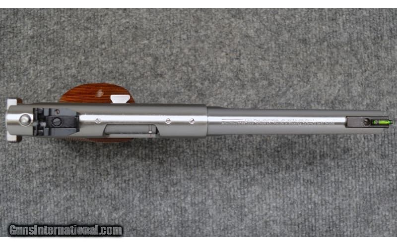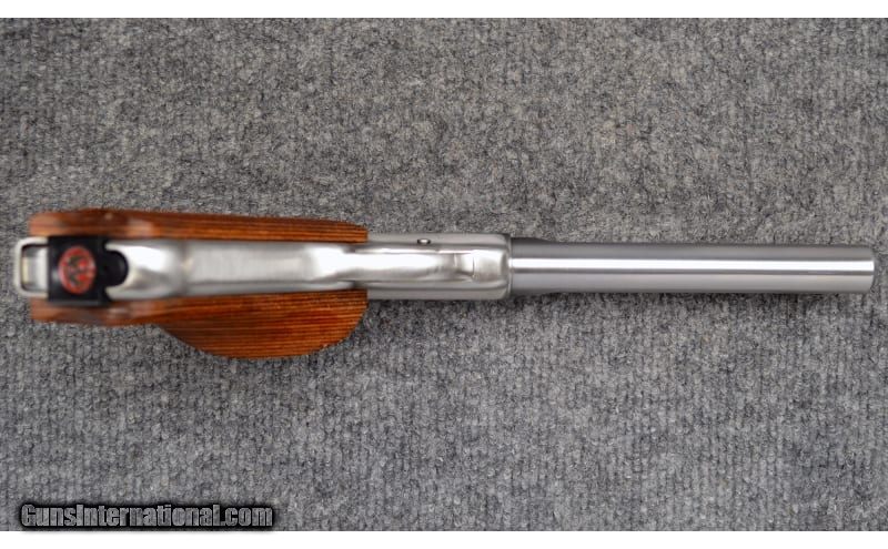 Description: For your consideration, a Ruger Mk II chambered in .22 Long Rifle. This is an example of the Competition Target model which features a factory drilled and tapped receiver, thumbrest grips, and a slab-sided bull barrel. Year of manufacture is 2005. The trigger and bolt release have been replaced with Volquartsen units. .22 Long Rifle SOLD Metal Condition: Very Good+ Wood Condition: Excellent Bore Condition: Excellent Barrels: 7 Triggers: Smooth Face Weight: 2.75 lbs Sights: Iron Sights Item Location: Hamburg, PA |