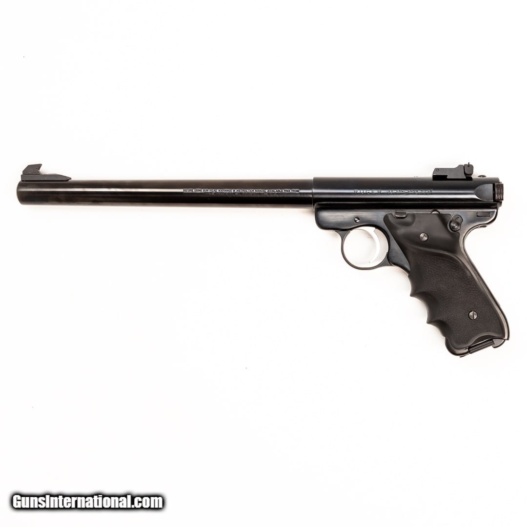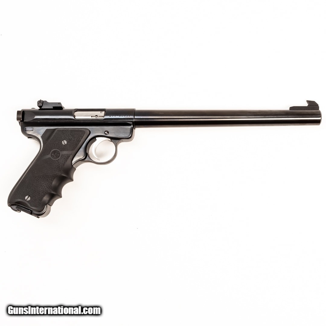 Description: Guns Listing ID: 903877 Built on a platform with a proven history of performance, the Ruger Mark II Target is an upgraded version of the original Mark I Target. It features a long barrel and enhanced sights for precision shooting. This model is equipped with a 10\" barrel and a Hogue grip. It includes the original case, manual, two 10-round magazines, and an extra 5\" rail. Get the best bang for your buck when you get a Certified Used Firearm . When you see the Certified Used stamp on any of our firearms, you can be confident that you’re getting exactly what you want – a gun only in very good to excellent condition and held to the highest quality standard. All Certified Used Guns come with a ‘no questions asked’ return policy . PLUS, ALL CERTIFIED USED GUNS SHIP FREE! SOLD Manufacturer: RUGER Model: MK II TARGET Caliber Info: .22 LR Condition: Used - Non-Certified Barrels: not specified Finish: BLACK |