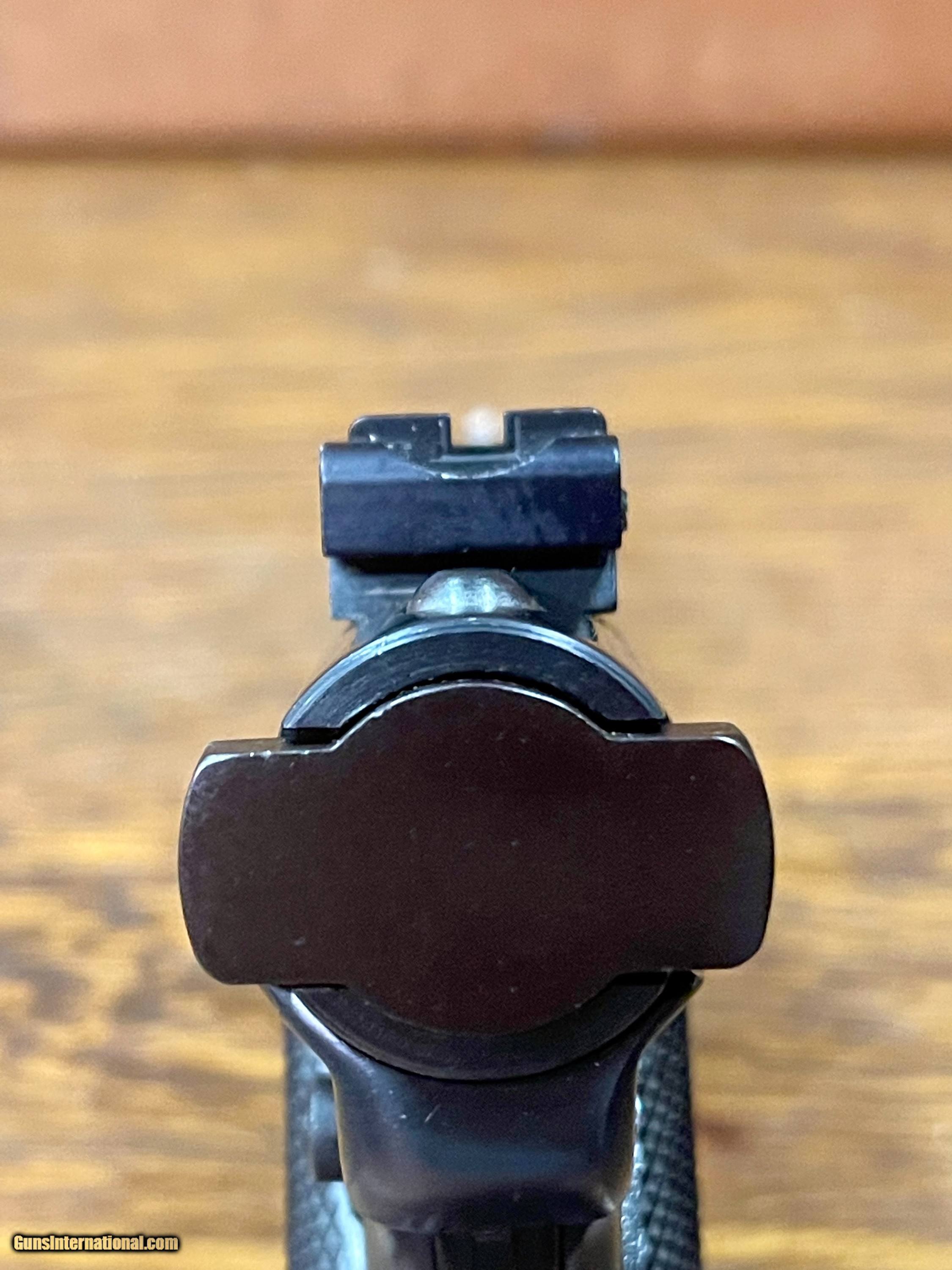 Description: Ruger MK II Target .22 Make: Sturm, Ruger & Co. Model: Mark II Pistol Serial Number: 217-24374 Year of Manufacture: 1991 Caliber: .22 Long Rifle Action Type: Single Action Semi-Automatic Pistol Markings: The left side of the receiver is marked with a two-line Ruger warning. The left side of the receiver is marked “RUGER” and “.22 CAL. LONG RIFLE / MARK II TARGET”. The right side of the receiver is marked with the serial number, “217-24374”. Barrel Length: 5 1/2” Bull Barrel Sights/Optics: The front sight is a blade integral to a base screwed to the barrel. The rear sight is a square-notch leaf adjustable for elevation and windage in a base dovetailed to the receiver. Stock Configuration and Condition: The grips are two-piece black checkered polymer panels; the right features an inset Ruger phoenix logo medallion. The grips are free of any notable wear or damage. The checkering is sharp. There are no chips or cracks. Overall, the grips rate in Excellent condition. Type of Finish: Blued Finish Originality: Original Bore Condition: The bore is bright and the rifling is sharp. There is no erosion. Overall Condition: The pistol retains 97% of its blued finish and all markings are clear. Overall, this pistol rates in Fine-plus condition. Mechanics: The action functions correctly. We did not fire this pistol. As with all used firearms, thorough cleaning may be necessary to meet your maintenance standards. Box, Paperwork, and Accessories: This pistol includes four (4) 10-round magazines Our Assessment: Modeled after Japanese Nambu pistols with just a dash of German Luger, the Standard pistol design makes for a striking firearm. Designed in the Ruger founder’s garage, funded by a friend impressed with the design and willing to take a chance, the standard came to be like so many distinctly American things: through will and ingenuity. And it paid off. The Standard was in production for forty years, and the design is, as of 2021, in its fourth iteration, the Mark IV (a hinged receiver pistol) and saw several wonderful designs in between, each having become in its way one of the most popular and reliable pistols in America. The Mark II saw the introduction of adjustable sights and heavier barrels—this Mark II features a more compact 5 1/2” Bull Barrel. Sourced from the collection of a well known local historian and collector, this weapon has been well maintained and cared for. ****WE ARE ALWAYS BUYING AND ARE VERY EXPERIENCED IN ESTATE SALES TOO. LET US KNOW HOW WE CAN HELP!**** PAYMENT: -Payment must be recieved within 10 days of purchase. 3% additional charge for credit card processing. SHIPPING & HANDLING: -$30 for handguns and $45 for long guns SHIPPING FIREARMS: -Firearms shipped to FFL dealer only -We will ship upon receipt of payment and signed legible copy of dealer's FFL via Fax, Mail or E-mail. SALES TAX: -Florida residents add 7.5% sales tax. PRODUCT: -We operate a gun shop which means that every item is for sale in our store and it may have already been sold when you contact us. NEW GUNS: -On new Firearms we may use file photos instead of the actual gun. CONTACT: -Contact me with any and all questions. We want you to be happy with your purchase. PHONE #: (904) 271-5270 STORE HOURS: Mon-Fri: 11p-6pm Sat: 9a-3p BUYER: -It is Buyer's responsibility to ensure that the weapon is LEGAL to own in your city/state. SOLD Handgun Caliber: .22 Long Rifle Manufacturer: Ruger |