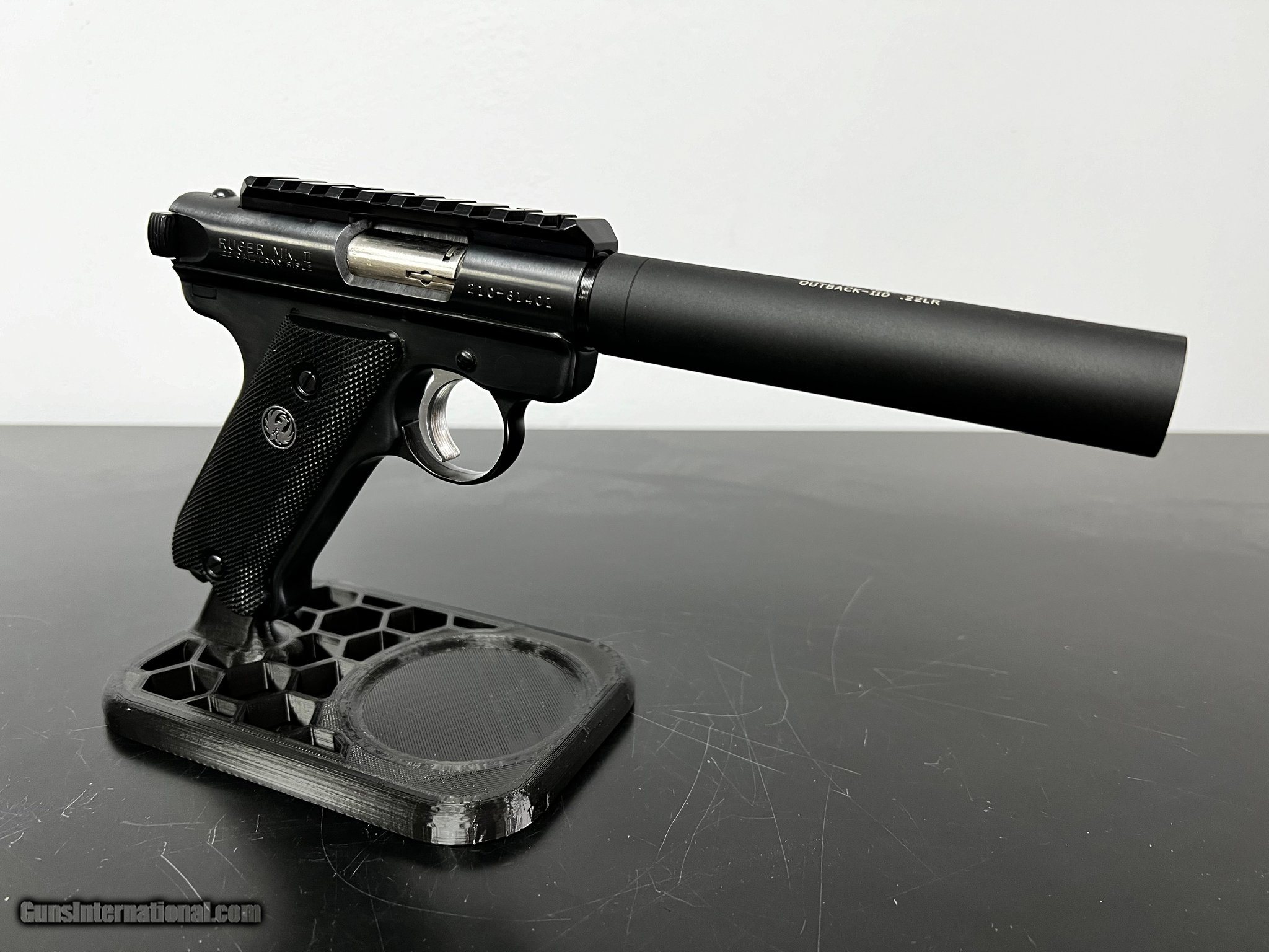 Description: Guns Listing ID: 1350915 RUGER MKII 22LR SILENT NIGHT CUSTOM 2\" BARREL WITH DEMO (GEMTECH OUTBACK II ) FOE SILENCER THREADED BARREL 1/2X28 (PERFECT FOR YOUR SILENCER) 1913 RAILED OPTICS MOUNT / TAKE A LOOK AT THE PHOTOS. THANKS FOR LOOKING. SOLD Manufacturer: RUGER Model: MKII CUSTOM SILENT NIGHT Caliber Info: .22 LR Condition: Used - Non-Certified Barrels: 2 BARREL Finish: BLUED |