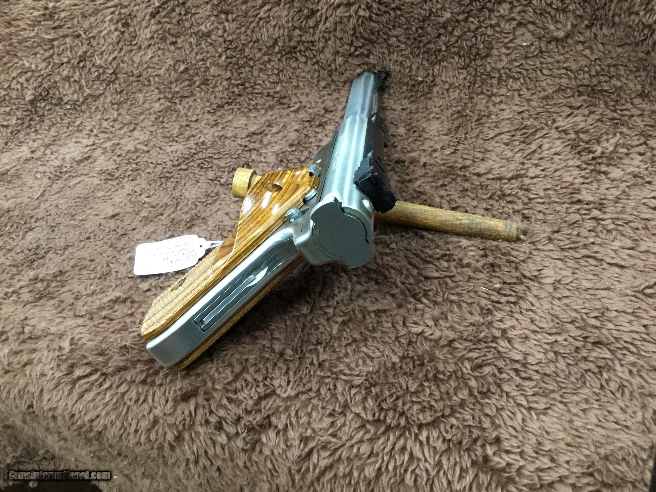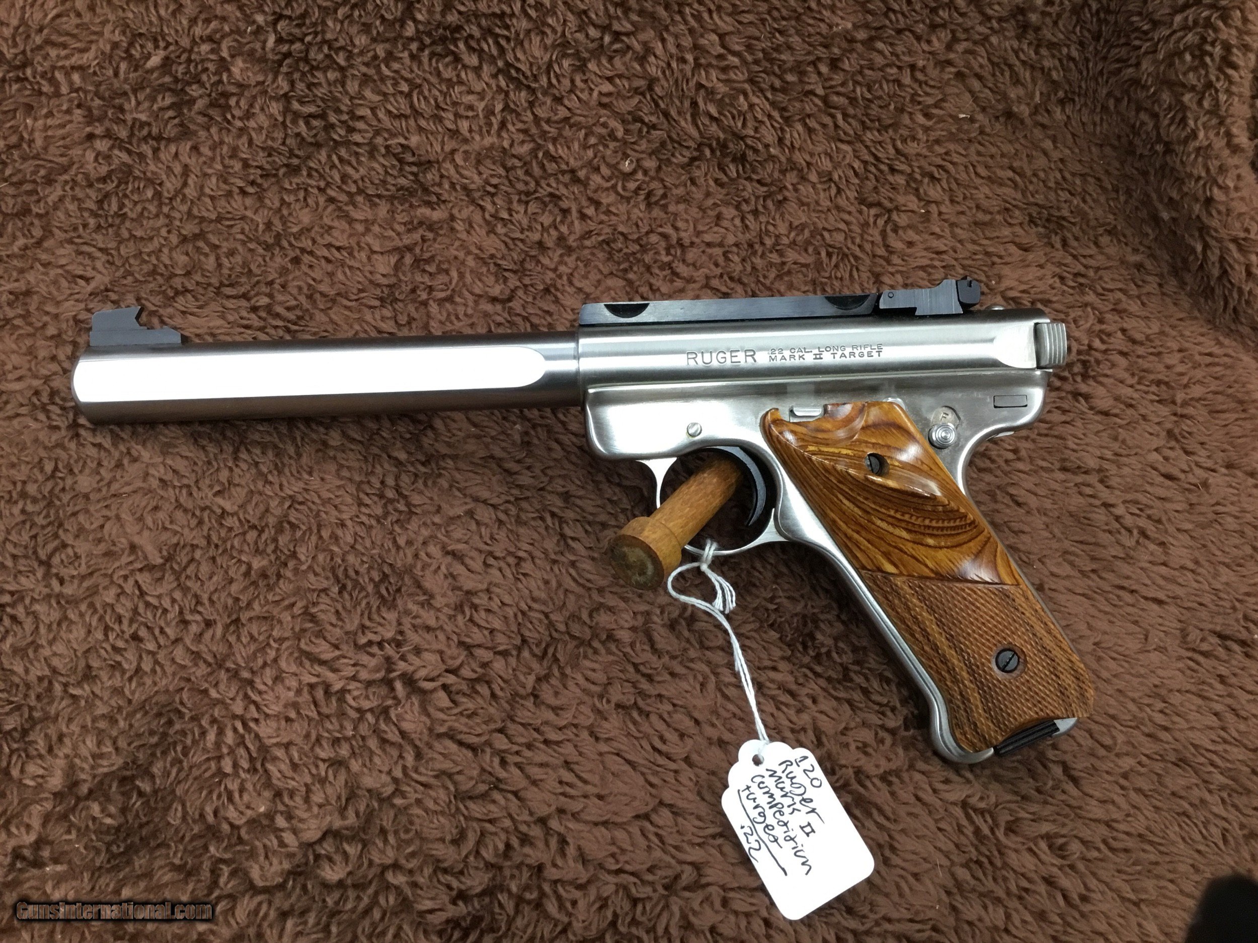 Description: WE ARE OFFERING THIS MINT CONDITON RUGER MKII SLAB SIDE COMPETION TARGET IT ALSO HAS RUGER BASE INSTALLED YOU CAN OUT SCOPE OR USE THE IRON SIGHTS BARREL IS 6 AND 7/8 PICS WILL TELL THE STORY 549.00 $35.00 SHIP AND INSURE Thank you for looking at our items. If it is listed on the site, we still have it i the shop. If you wish to buy, hut buy it now and call the shop to pay. Ask for Bree....... (803) 874-1060. NO sales to California EXCEPT under certain conditions. If you are in California, please DO NOT push buy it now and just CALL the shop first. ...... (803) 874-1060 NO INTERNATIONAL SALES. SOLD Handgun Caliber: .22 Long Rifle |
