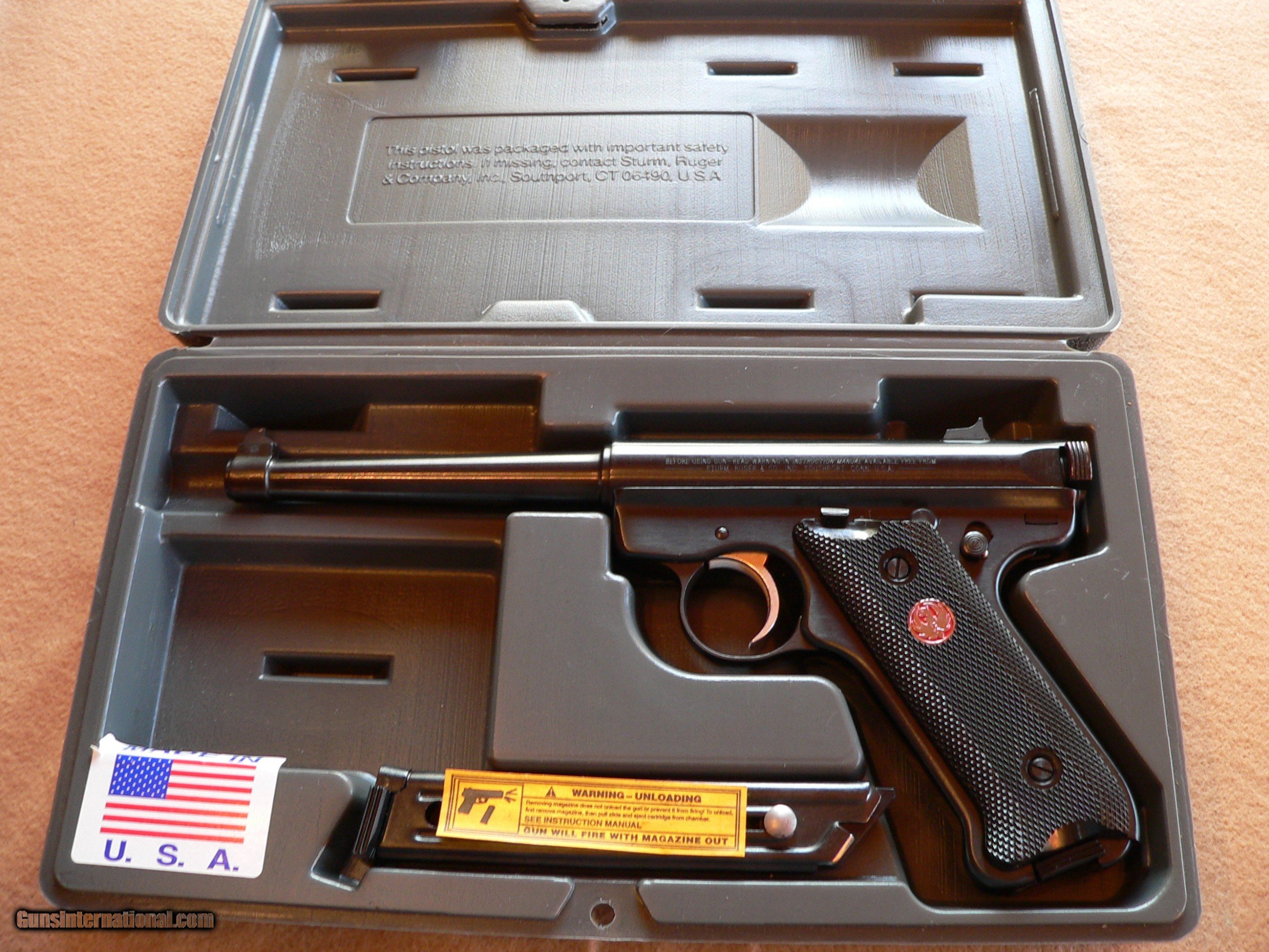 Description: Caliber 22LR Semi-Auto Pistol with 6” Barrel - Standard Model. OVEREALL RATING OF GUN: Metal: 99+%; Grip: 99+%; Bore: Mint; Checkering: Excellent; Gun looks to be unfired. Factory box, but no papers. S/N: 223-141XX SOLD |