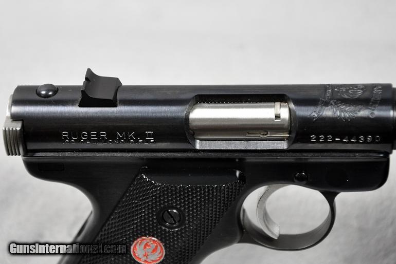 Description: Sturm Ruger, semi-automatic pistol, Model Mk II, 50th ANNIVERSARY MODEL, caliber .22 LR, s/n 222-44390 (Mfg. 1999 only), barrel length 4 3/4", retains 100% of original blue w/ no nicks, dings, or scratches, fixed sights, CONDITION OF BORE IS MINT, two factory magazines, IN HONOR OF ALEXANDER STURM (RUGER'S CO FOUNDER), A "RED" EAGLE MEDALLIAN IS INSET INTO THE BLACK COMPOSITE GRIPS, "RED" EAGLES ON THE BOTTOM OF THE MAGAZINES, AND THE PISTOL IS CASED IN A BRIGHT "RED" HARD CASE, EAGLES ON RUGERS HAVE BEEN BLACK SINCE MR. STURM'S PASSING, A RUGER CREST IS ENGRAVED ON THE TOP OF THE FRAME INDICATING THE PISTOL IS THE 50TH ANNIVERSARY MODEL, AND THERE IS AN EAGLE EMBLEM ON THE REAR OF THE BOLT, Pistol appears to be factory test fired only, mint in and out, Retail value $600.00, Sale priced at $495.00 We cater to first time GI buyers. Don't worry, we are real. We provide our phone number as part of our response to your first inquiry. You can purchase from us with total ease and confidence. We will guide you through the purchasing process if need be. We are a Platinum dealer and Verified Seller on GI having placed over 3500 listings so far. GI is the only site on which we advertise. We strive to describe all our sale items accurately and fully and include professional quality photos of each one. Although we offer a 3-day, no questions asked, return policy it has rarely been used the entire 56 years (since 1960) we have been in business under the same ownership. The first potential buyer who states that he definitely wants an item gets it. Those having questions who do not definitely commit to purchase in their first inquiry will have their questions answered but may lose the sale if another buyer e-mails after they do and definitely commits to purchase before we can get back to the first inquirer to answer their questions. This happens almost daily and disappoints a lot of people. If you see something you want- state a definite committment to buy it. You will not be disappointed. WANT TO VISIT A VIRTUAL GUN SHOW ANYTIME RIGHT ON YOUR COMPUTER? The easiest way is to click on the box up in the top right hand side of this ad labelled "SEE ALL LISTINGS BY MARYLAND ARMS COMPANY". Over 100 guns and related items we currently have listed on GI will come up with photos and complete descriptions that are available for purchase right now. USA SALES ONLY. Thank you Also check out "Bonnie's Guns" for other fine firearms. SOLD |