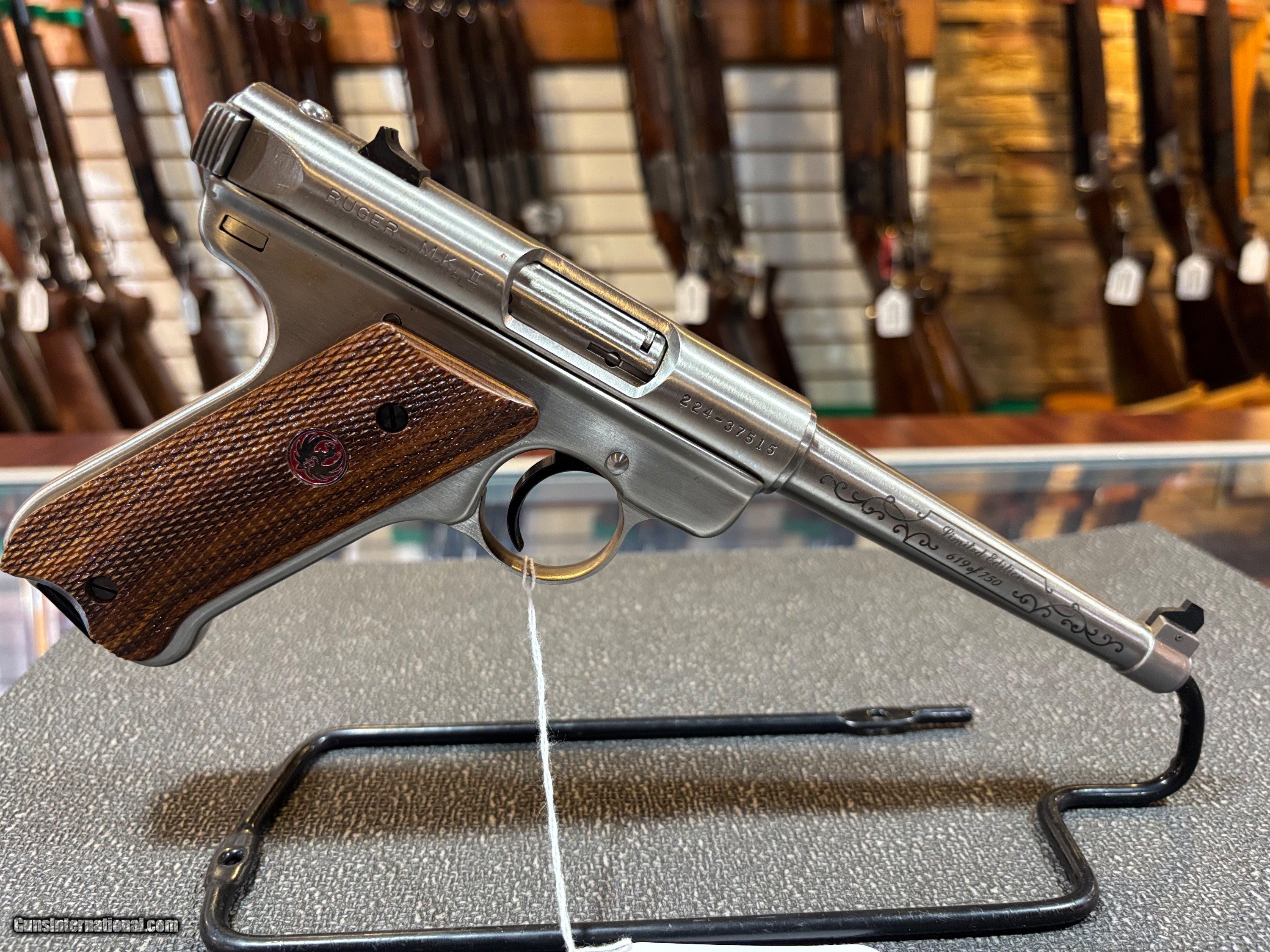 Description: USED Ruger Mark II NRA Edition #619 of 750 .22lr 10 round capacity (1) magazine included NO Box or paperwork SOLD Handgun Caliber: .22 Long Rifle Manufacturer: Ruger Model: Mark II Serial Number: 224-37515 Barrel Length: 6 Condition: VERY GOOD |