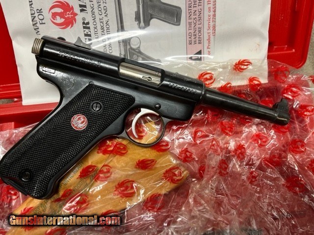 Description: Three Consectutively serial numbered 50th Anniv. MkII pistols, all NIB, unfired 4" barrel, w/ 50th anniv.crest engraved on receiver. Very Unique set. These 3 pistols are all NIB examples of MKII pistols made in 1999 for the Ruger 50th celebration. Model # MK450 shown on each matching serial numbered box. These three pistols are priced less than the retial price of a new MKIV standard pistol so this a great deal! Once in a life time chance to purchase three brothers than have been together sonce birth. AskiReduced to $1500 for the tripps, not for sale seperately. Shipping and insurance are extra, CC +3% bank fee. SOLD Handgun Caliber: .22 Long Rifle Manufacturer: Ruger Model: MK450 Serial Number: 222-87822/23/24 Barrel Length: 4 Condition: NIB Metal Condition: NIB Wood Condition: NIB Bore Condition: NIB Manufacture Date: 1999 |