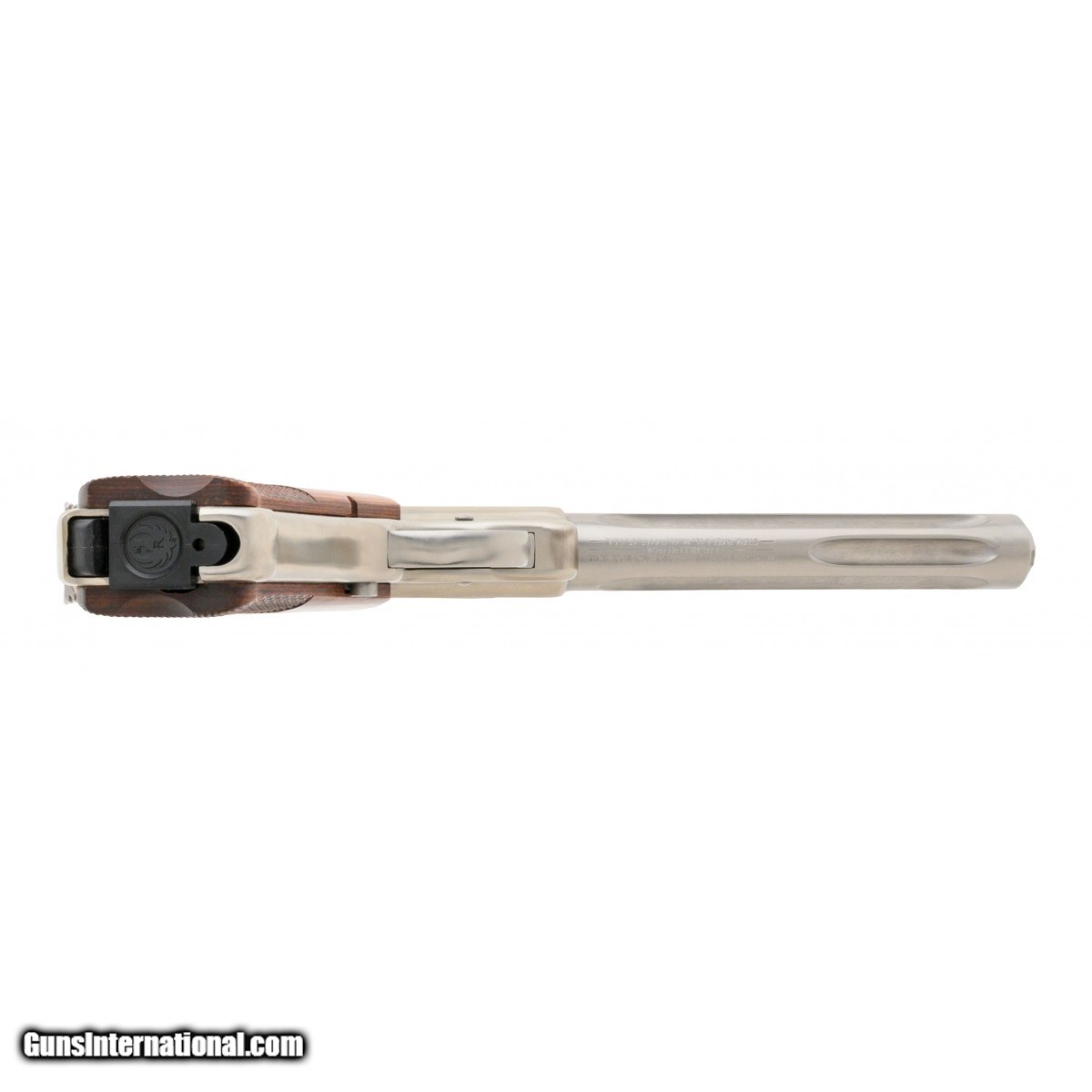 SN: 273-61614. Modern production. .22 LR with a 7"" stainless fluted barrel. Bore is in near excellent condition. Ruger semi-automatic target pistol. Metal is in near excellent condition. Grips are in excellent condition. Overall condition is near excellent. Comes with case and extra magazine.