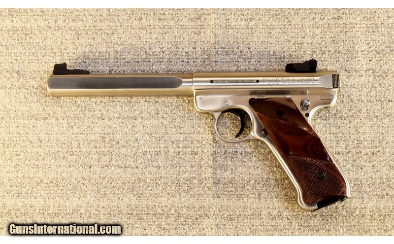 Description: This is a pre-owned Ruger Mark III Competition Target in .22 Long Rifle with a 7-inch slab-sided barrel .22 Long Rifle SOLD Metal Condition: Very good with a few small scratches and dings Wood Condition: Very good with a few small scratches Bore Condition: Clean with bright lands Barrels: 7 Butt Pad: Checkered walnut with thumbrest Weight: 2 Lbs. 10 Oz. Sights: "Target front, adjustable rear Item Location: Glendale, AZ |