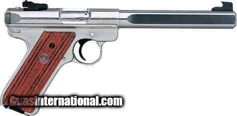 Description: Guns Listing ID: 551247 The Ruger Mark III Competition is a semi-automatic handgun built on the proven durable and reliable platform of the Mark III series and similar to the Mark III Target with slightly different features. Chambered in 22 LR with a 101 capacity the Mark III Competition employs a slab-sided bull barrel to reduce the pistols front weight while aiding in stability round after round. Other features of the Mark III Competition include an internal cylindrical bolt checkered cocobolo grip loaded chamber indicator adjustable sights and a magazine disconnect. Details Caliber 22 LR - Capacity 10 - Material Stainless Steel - Front Sight Fixed - Barrel Length 6.88 - Grips Checkered Brown Laminate with Thumbrest - Finish Satin Stainless - Width 1.82 - Rear Sight Adjustable - Barrel Style Slab-Sided Bull - Weight 45 oz. - Overall Length 11.12 - Height 5.50 - Grooves 6 - Twist 116 RH - Smoothly contoured comfortable grip features natural pointing grip angle with checkered grip panels for a non-slip hold. - Internal cylindrical bolt construction ensures permanent sight to barrel alignment and higher accuracy potential than conventional moving slide designs. - Contoured ejection port and easy-to-grasp bolt ears allow for durable and reliable operation round after round. - Accurate sighting system features fixed or adjustable sights and drilled and tapped receiver for Weaver-style scope base adapters for easy mounting of optics (adapters included not on fixed sight models). - Manual safety positively locks the sear when applied. - Features an unobtrusive internal lock that locks the safety in the SAFE position and allows you to safely secure the firearm when not in use. - Patented loaded chamber indicator that allows for visual confirmation of a loaded or empty chamber. - Features a conveniently located push button magazine release on the left side of the frame. - Magazine disconnect prevents discharge when the magazine has been removed. - Also includes two magazines internal lock key. SOLD Manufacturer: RUGER Model: MARK III COMPETITION Caliber Info: 22 LR/22 MAGNUM Condition: new Barrels: 6.9 BARREL |