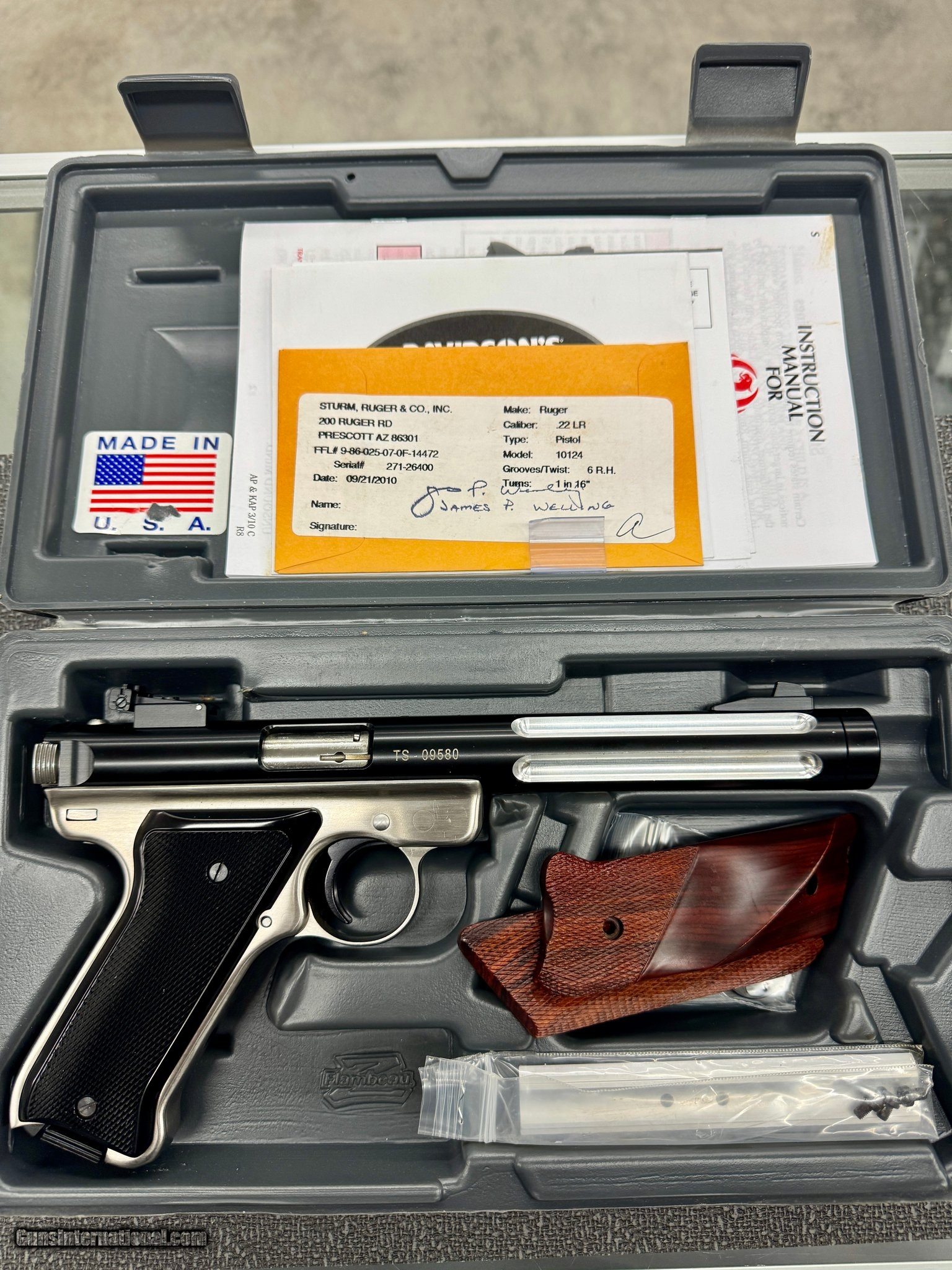 Description: Guns Listing ID: 495864 I have a used Ruger Mark III Hunter chambered in .22 LR for sale. This handgun was purchased new by me. I swapped out the upper to a Tactical Solutions Pac-Lite threaded upper to host suppressors. This firearm comes with the box and original grips, but the serial number does NOT match the box. The serial numbers on the Mark III‚‚s were on the upper, and since I‚‚ve changed the upper, the serial number no longer matches. This is a tack driving handgun that is now suppressor friendly! It‚‚s ready to hit the rang SOLD Manufacturer: RUGER Model: MARK III HUNTER Caliber Info: .22 LR Condition: Used - Non-Certified Barrels: 6 Action: SEMI AUTOMATIC Finish: black & stainless |