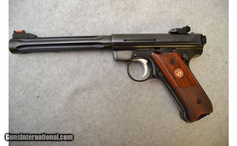 Description: Great shape overall. The metal has few if any handling marks and the grips are is outstanding condition as well. Sources indicate 2010 as year of manufacture. .22 Long Rifle SOLD Chambers: Semi-automatic fed from detachable magazines. Metal Condition: Excellent. Wood Condition: Excellent. Bore Condition: Excellent with bright shine and strong rifling. Barrels: 7" Target profile with deep fluting. Triggers: Wide nickel plated with grooved surface. Butt Pad: Wood grip panels with bottom third checkering and red Ruger Medallions. Weight: 2LBS 9OZ Sights: Front blade with red light pipe and adjustable rear notch. Chokes: N/A Item Location: Green Bay |